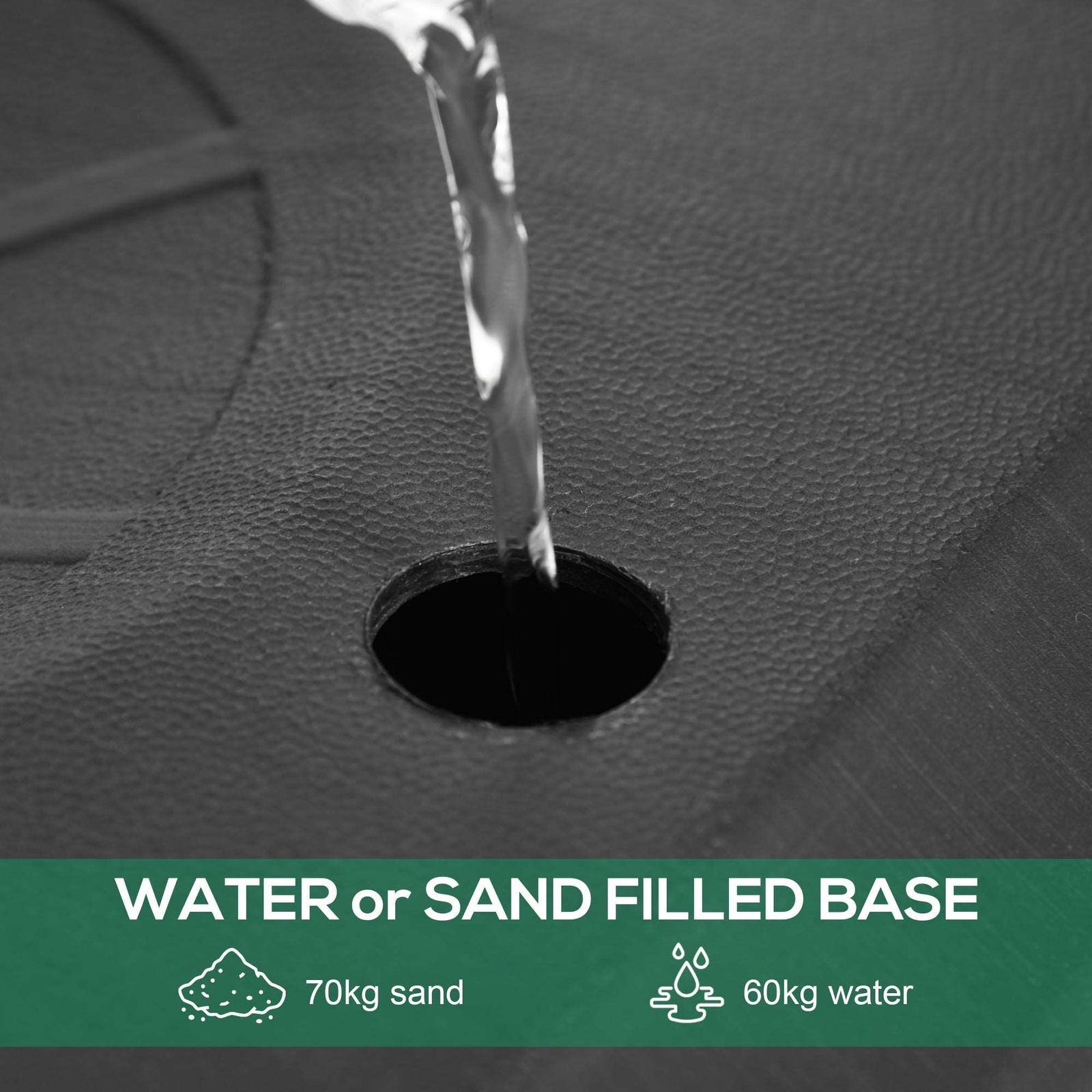 - Base can be filled with sand or water, keeping it firmly to the ground