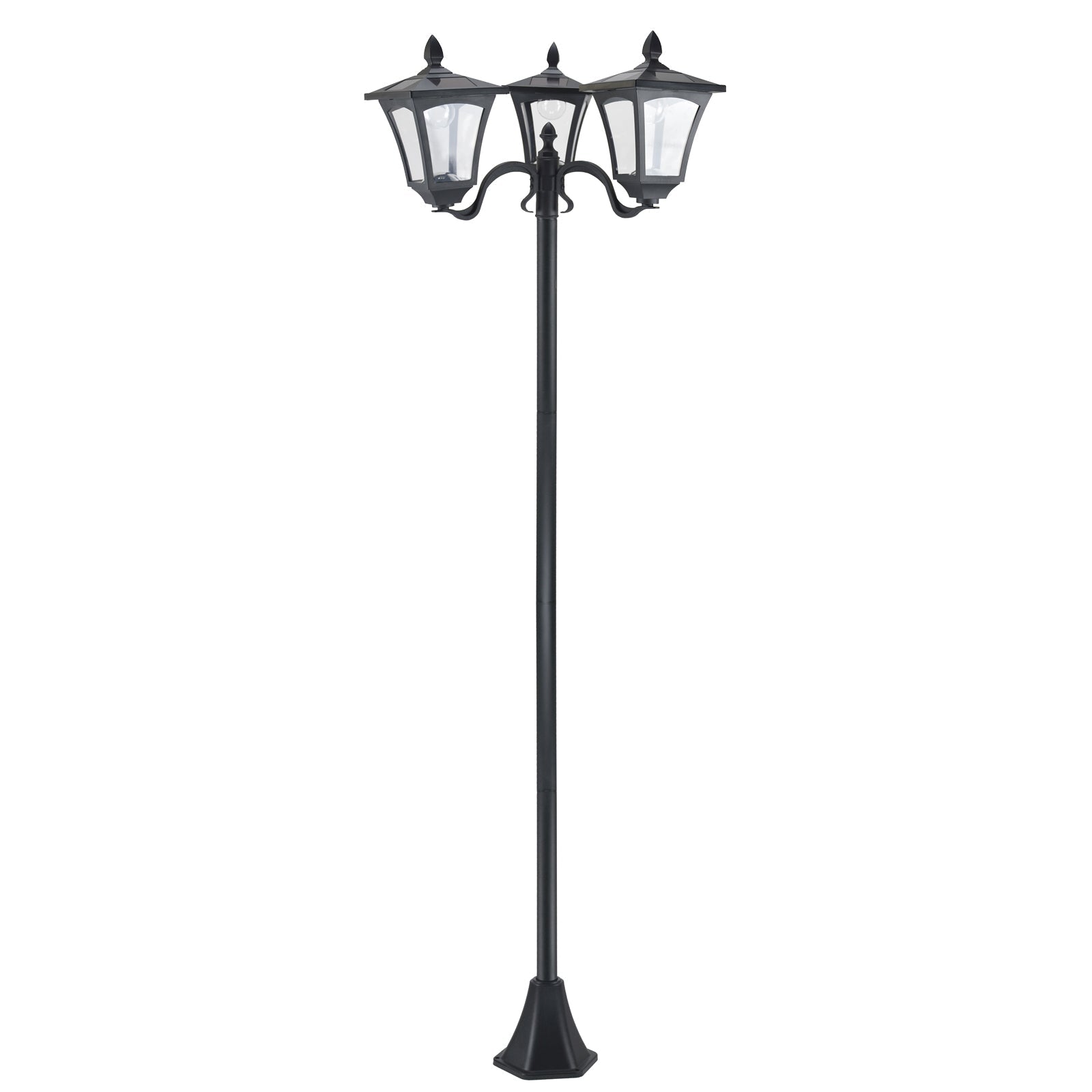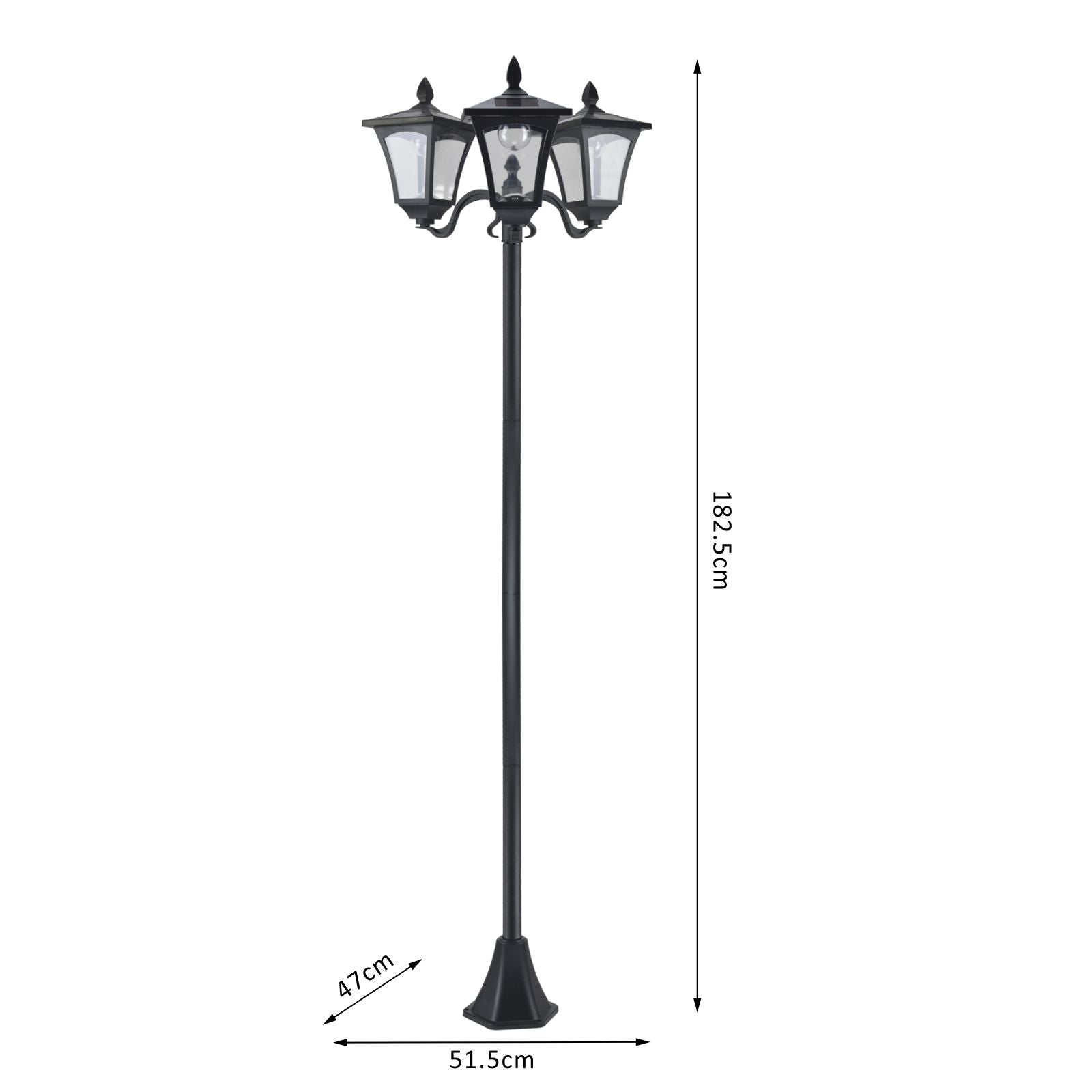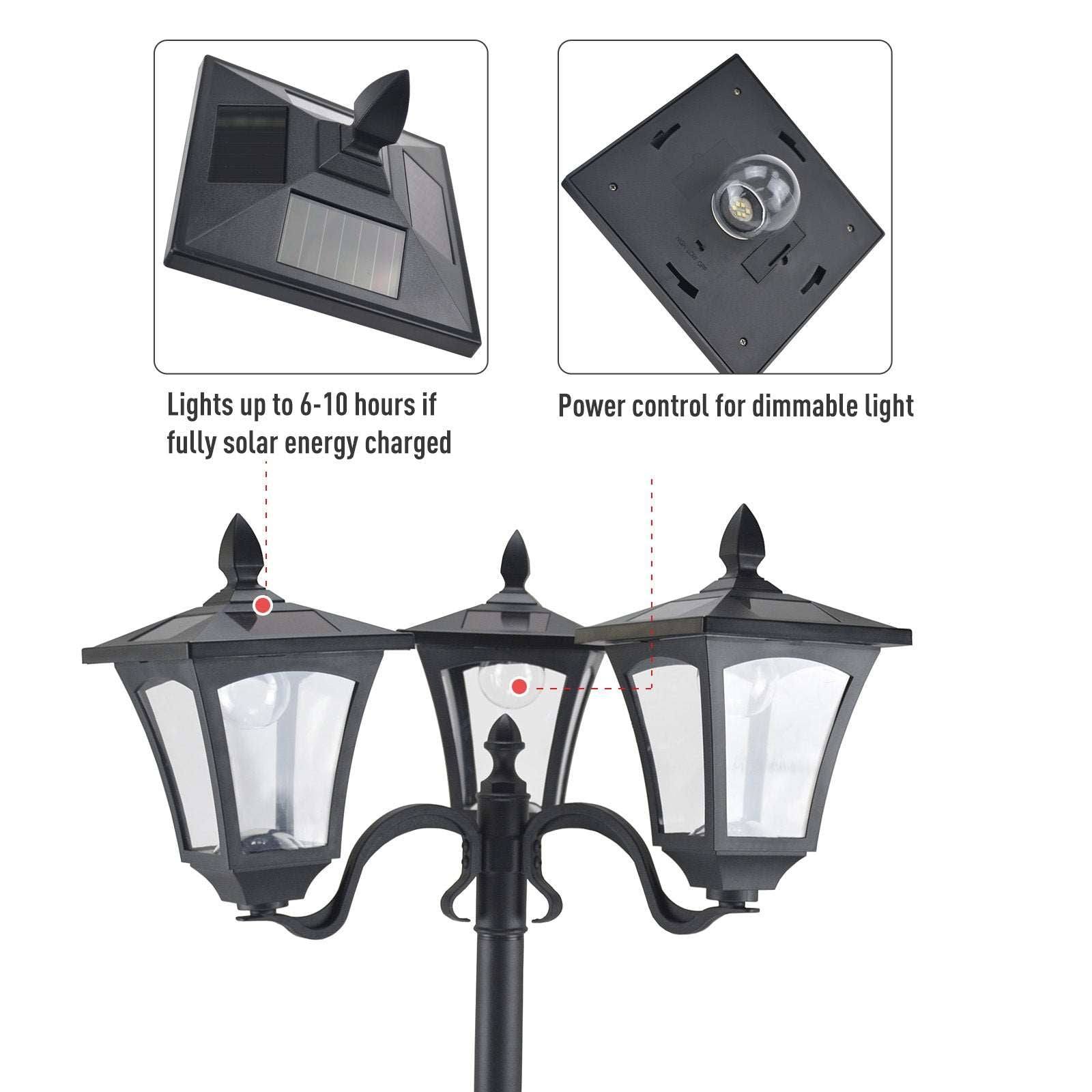 1.8m Traditional Victorian Style 3 Way Head Outdoor Garden Solar Post Lamp Sensor Dimmable LED Lantern Bollard Pathway IP44 Black