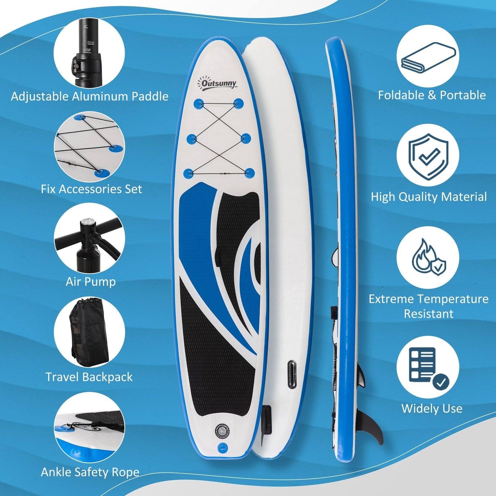 Water made extra fun, thanks to this stand up paddleboard from Outsunny. It comes with an adjustable paddle to suit different heights, whilst the removable fins allow you to move forward in a straight line. There's a bag included for travelling with the board, which is lightweight and foldable, making it easier to carry. The non-slip EVA provides extra grip when using, whereas the D-shape buckle and ropes keep you secure to the stand up paddleboarding a safe way to enjoy water activities.