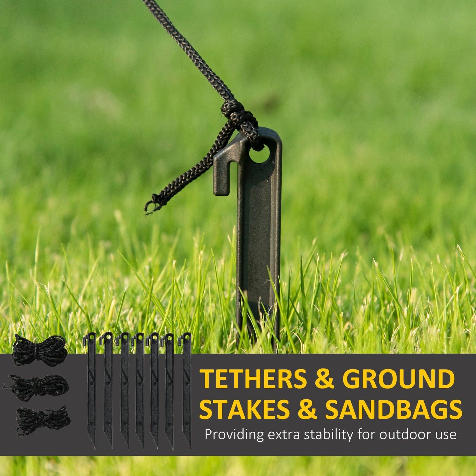 - Includes seven stakes, three drawstrings, and four sandbags to help keep it anchored on windy nights