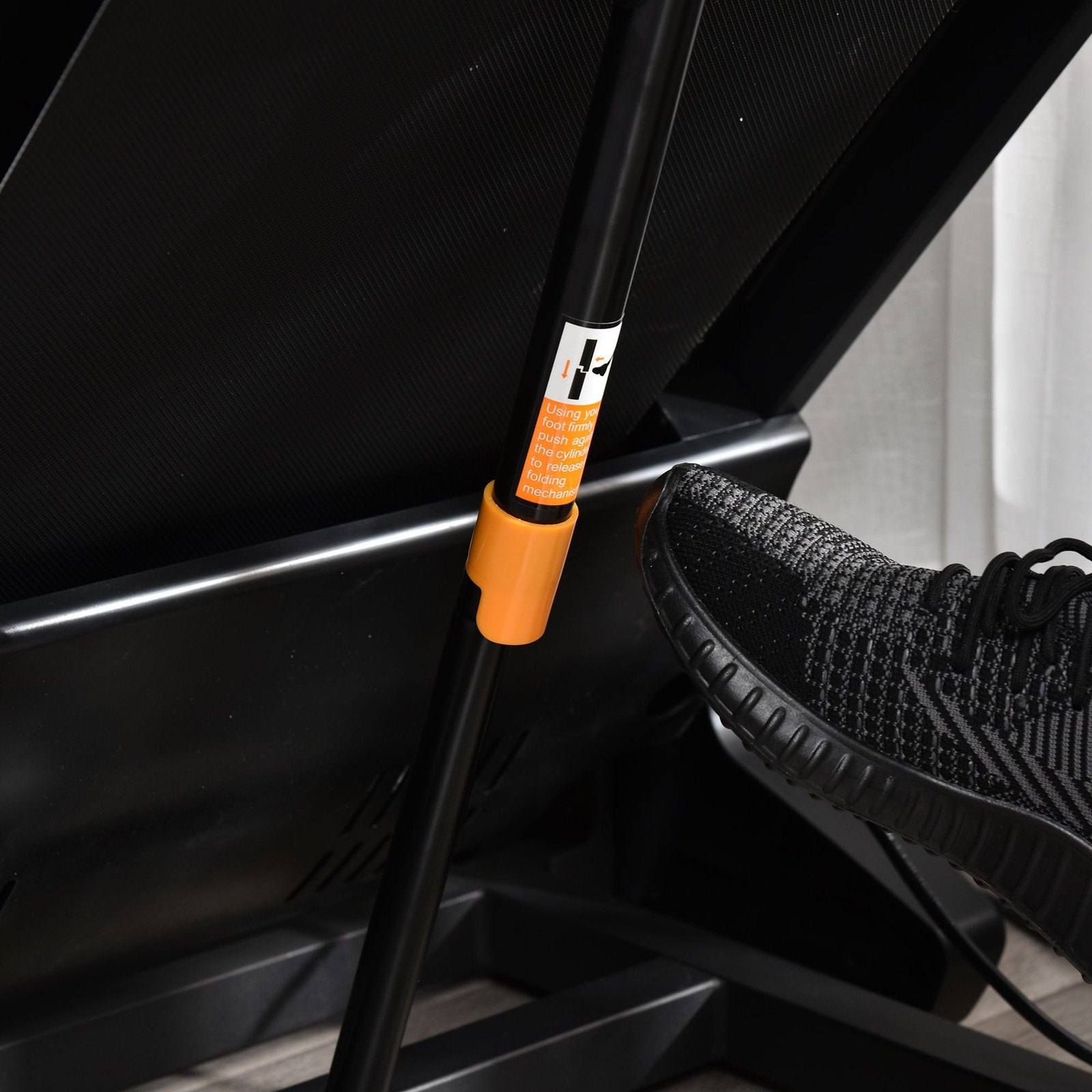 Want to stay active at home, without leaving the door? Then get this foldable treadmill from HOMCOM. The walking treadmill goes up to 12 km/h, giving you plenty of speed for a solid workout, with 12 modes to switch up your routine. The running mat angle can be positioned to three different angles. LED screen shows time, speed, distance  easy to keep track of your progress. Safety key stops walking machine immediately when pulled out. The compact treadmill completed with two wheels on the base.