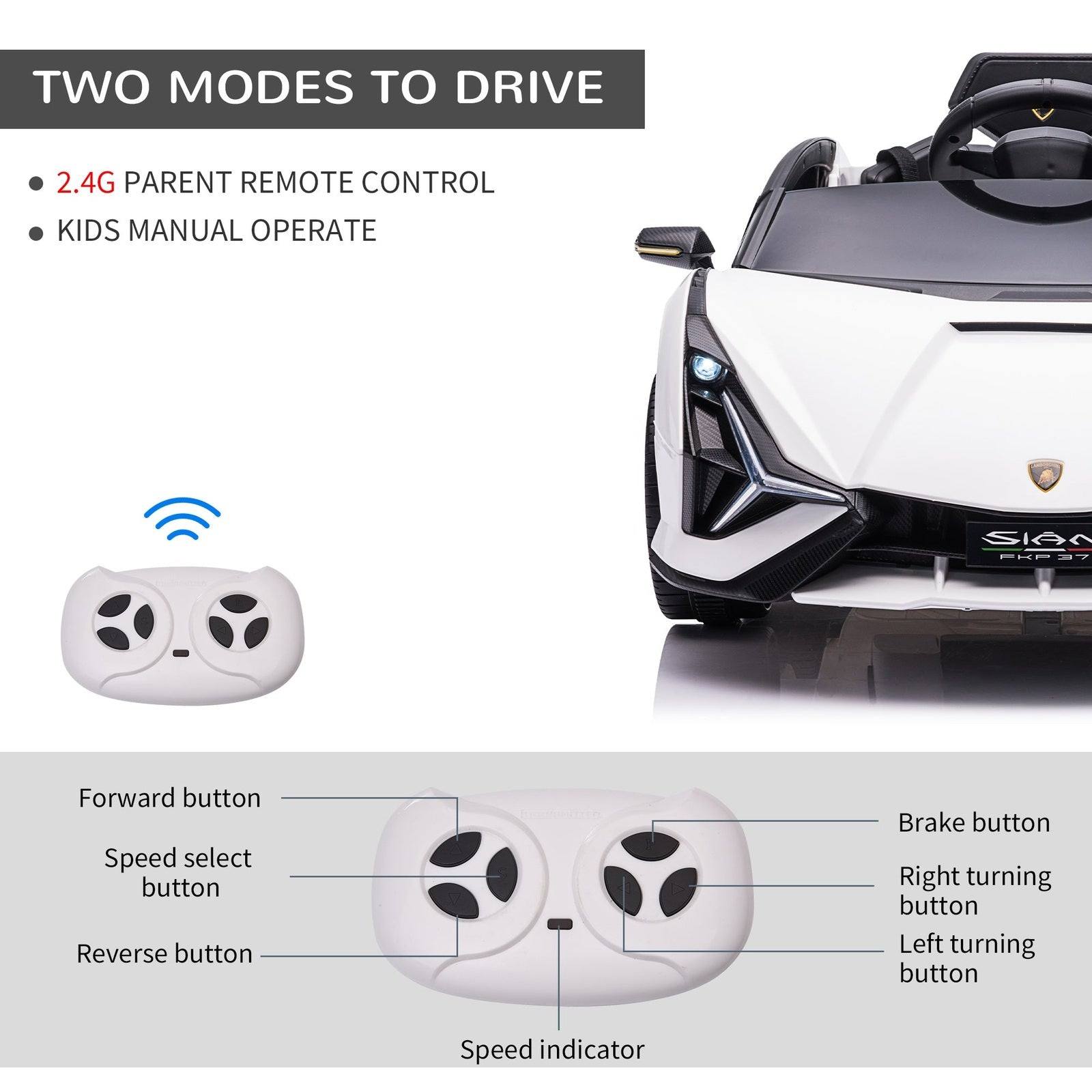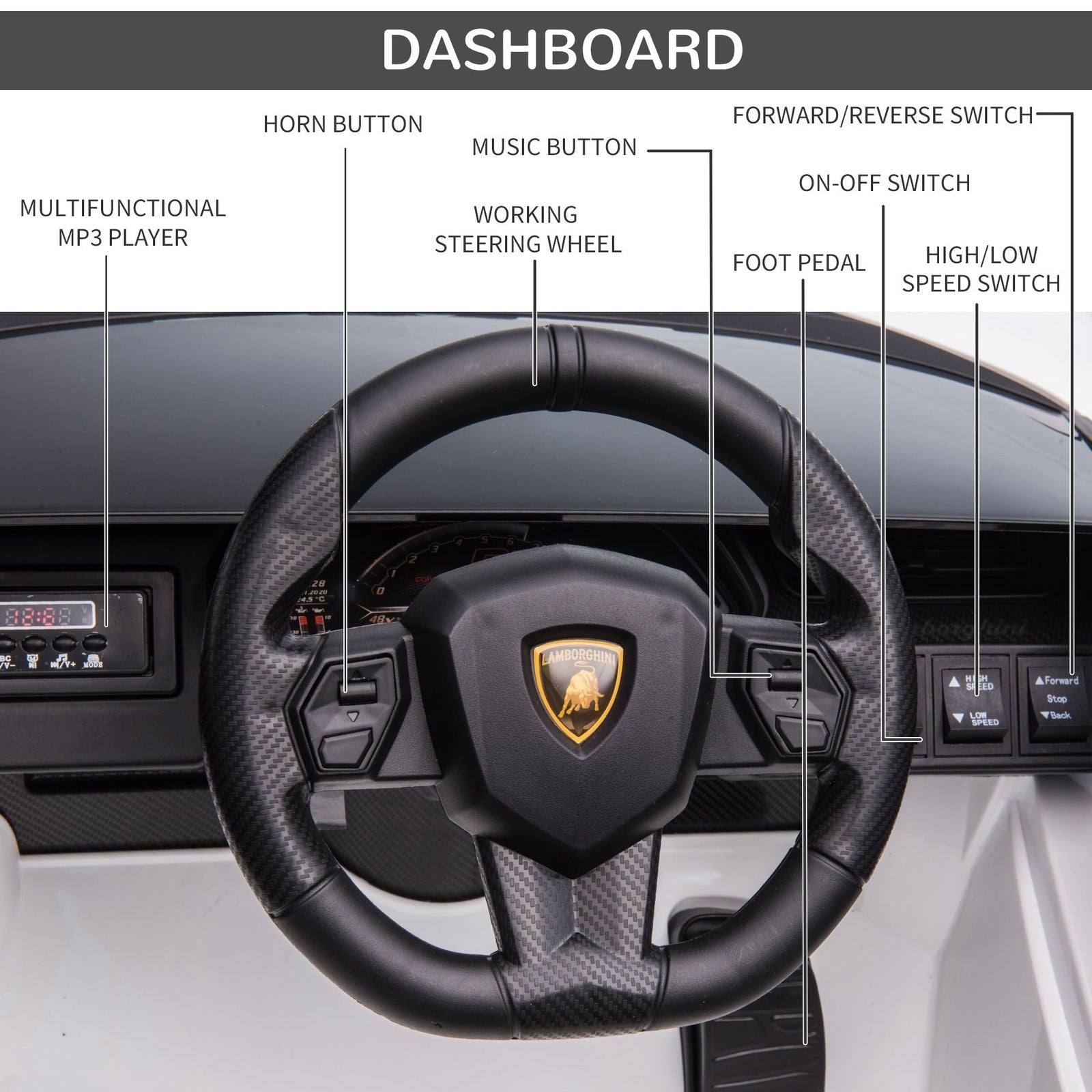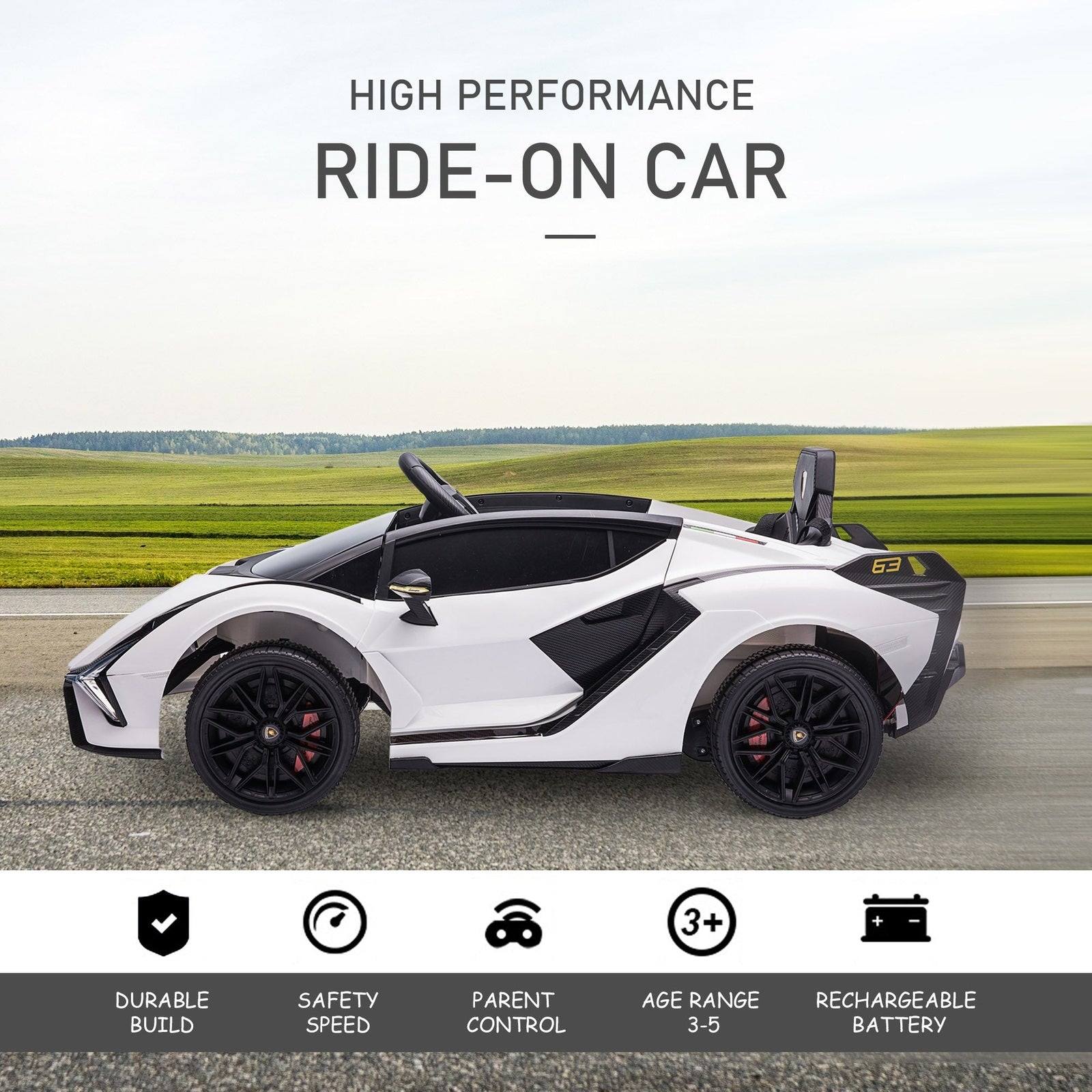 Fun and safe driving for children starts here - thanks to this ride-on car from HOMCOM. It's a cool officially licensed Lamborghini Sian, so it's super cool. Features include working headlights and tail lights, steering wheel, movement pedals and music player. They wide tyres ensure a smooth and comfortable ride, finished with a seatbelt for safety. Also comes with remote.
