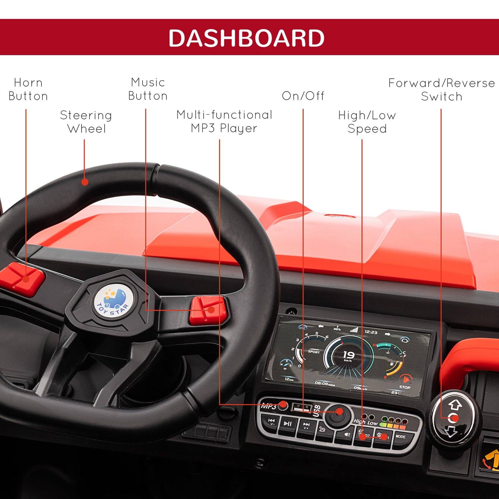 With this HOMCOM electric ride-on, kids will feel all the joys of driving. It's a two-seater, so they can bring friends along and enjoy the fun together. Capable of going up to 6km/h, this kids ride on utv features a music player, LED headlights and a horn just like the real thing. The remote control lets parents get involved and control the electric UTV, so no one misses out on the enjoyment.