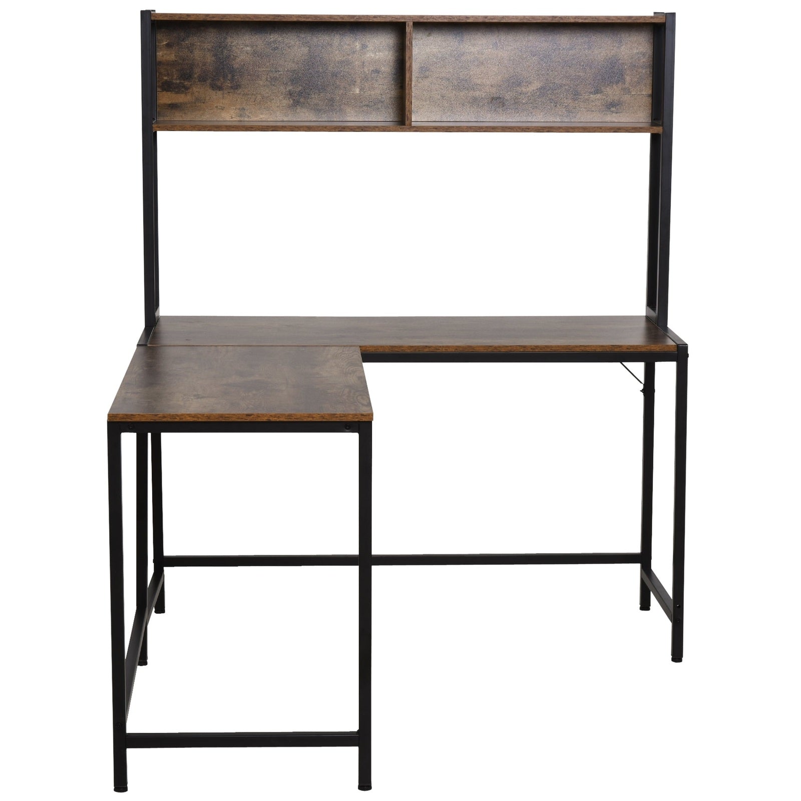 149H x 140L x 125W cm Particle Board Industrial L-Shaped Desk w Shelf - Brown & Black