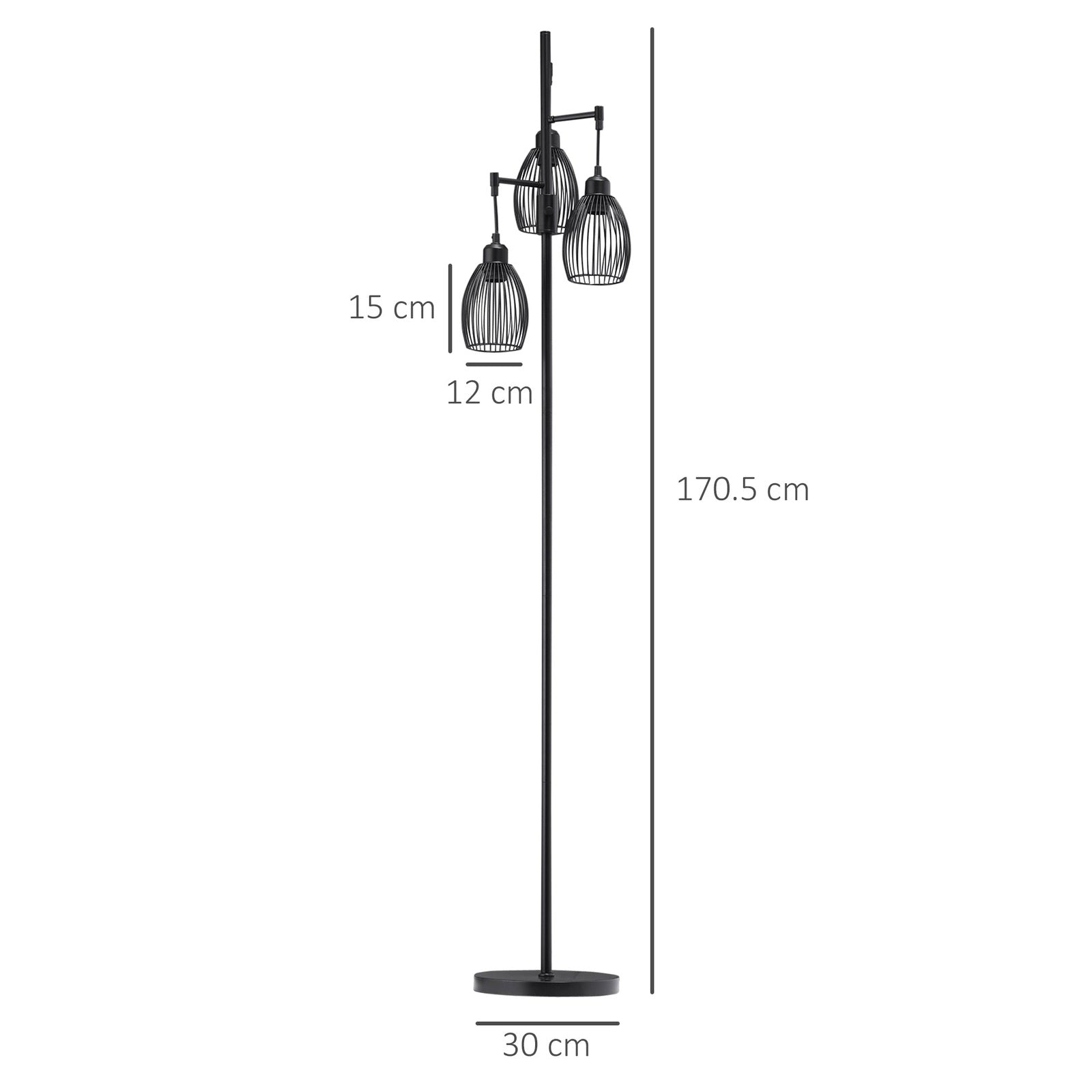 Bring industrial style into your home with this HOMCOM tall lamp. It features three lights for three lots of illumination - they can dim to create your own ambience. The black cage shades create style. It's made from steel, so this industrial floor lamp is strong - with a round base to keep balanced. Transform your space instantly. For Edison screw bulbs - maximum 40W.