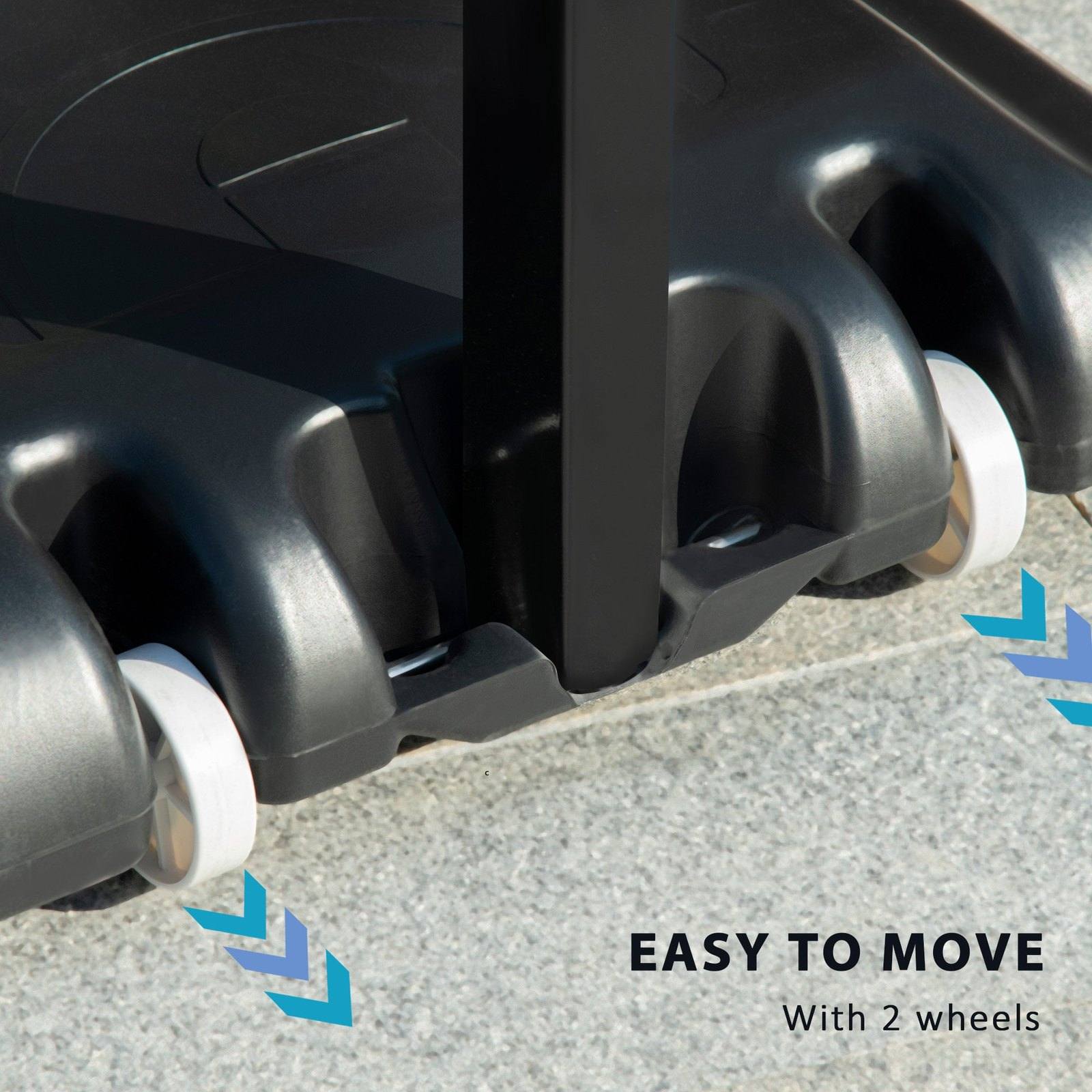 - Base can be filled with sand or water, keeping it firmly to the ground ? Built-in wheels to move around easily