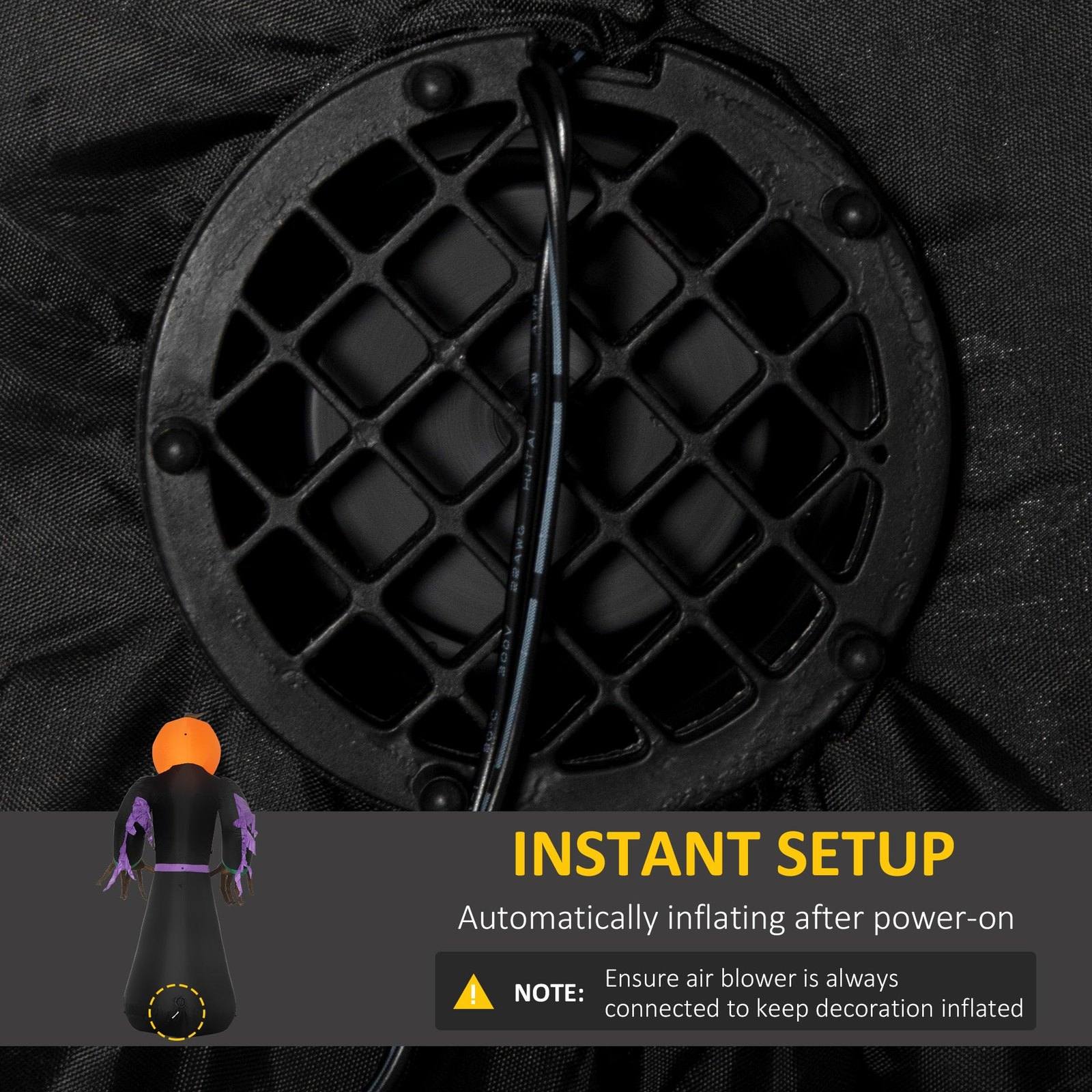 Create the ultimate spooky Halloween display in your own yard this holiday season with our large 2.1m tall, creepy inflatable pumpkin reaper from HOMOCM! Our self-inflating decorations feature internal LED lighting for a eerie glow at night. Weather-resistant polyester material provides many years of spine-tingling sights. Build the perfect holiday yard display this year to outdo the neighbors and scare all the trick-or-treaters in classic Halloween fashion.