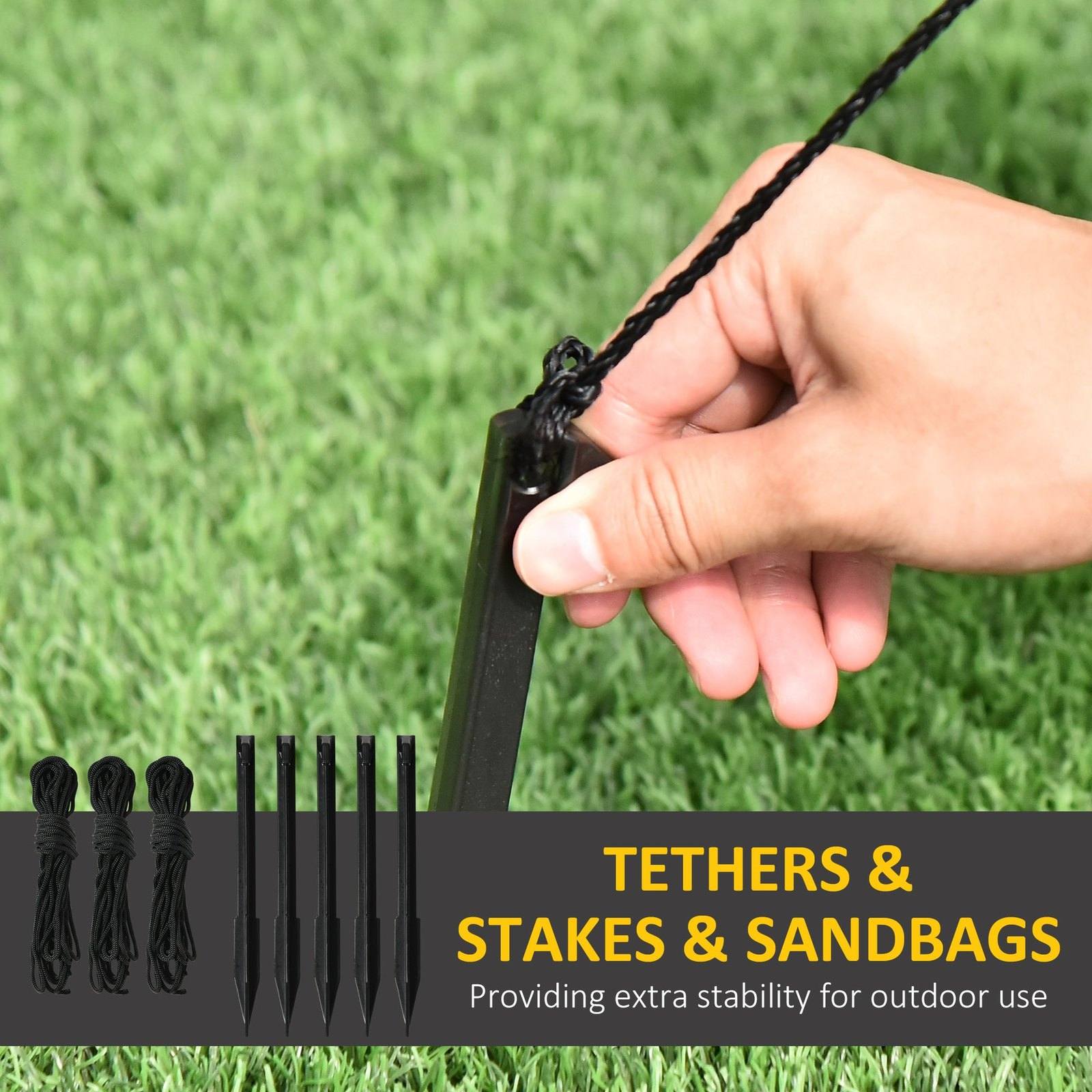 - Accessaries : 1 x internal fan( 1.0 A), 3 x tether ropes, 5 x ground stakes, 2 x sandbags