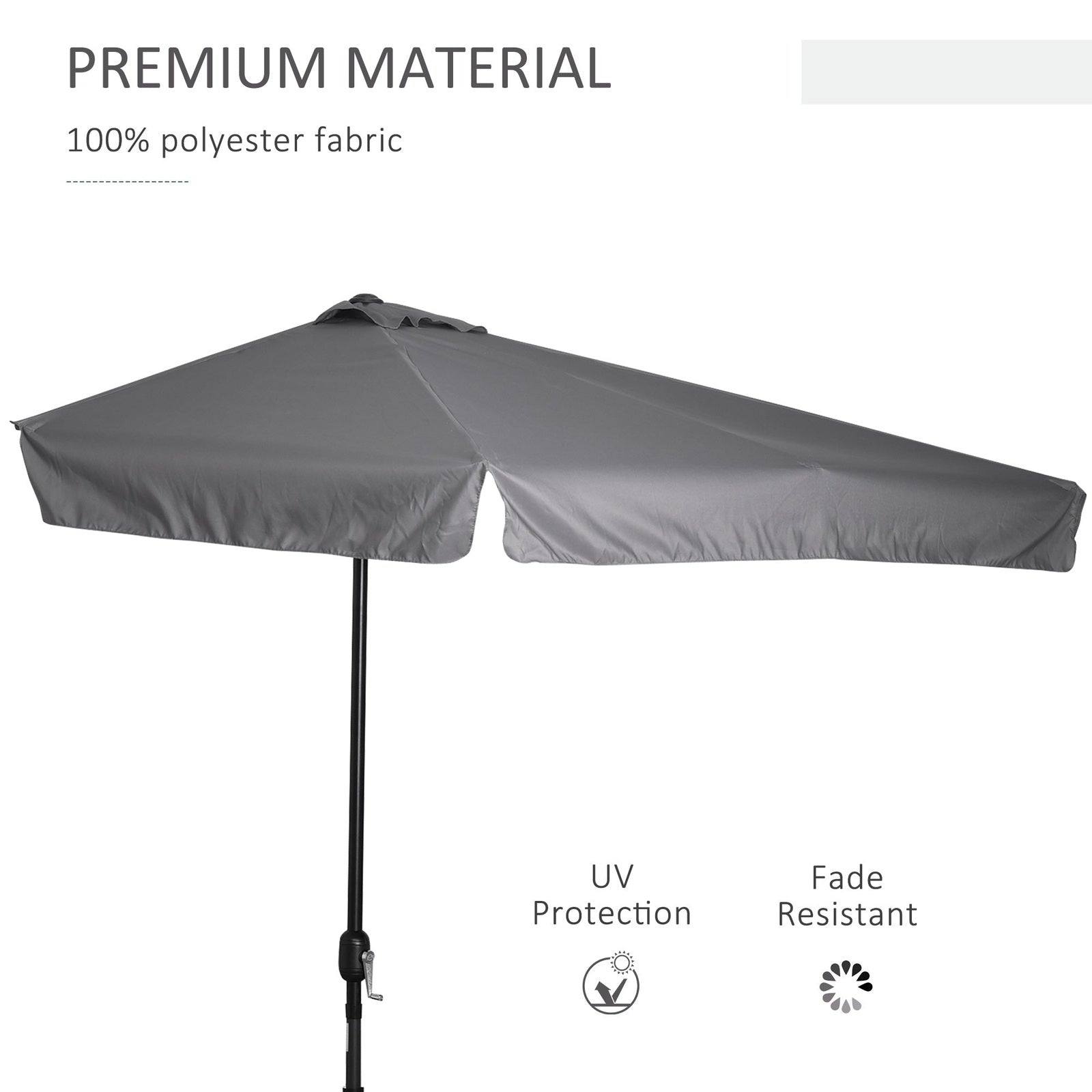 This patio umbrella parasol from Outsunny is perfect for those limited on space but want to enjoy the sun safely. The parasol for balcony will stand easily against flat walls without any gaps forming - ideal for balconies and small garden areas. The thick polyester canopy shielding heavy sun. This deck parasol is finished with a vent on the canopy, which allows air to pass through to prevent it overturning. Matching bases: Outsunny skus 84D-122, 84D-059, 84D-054 and 84D-050.