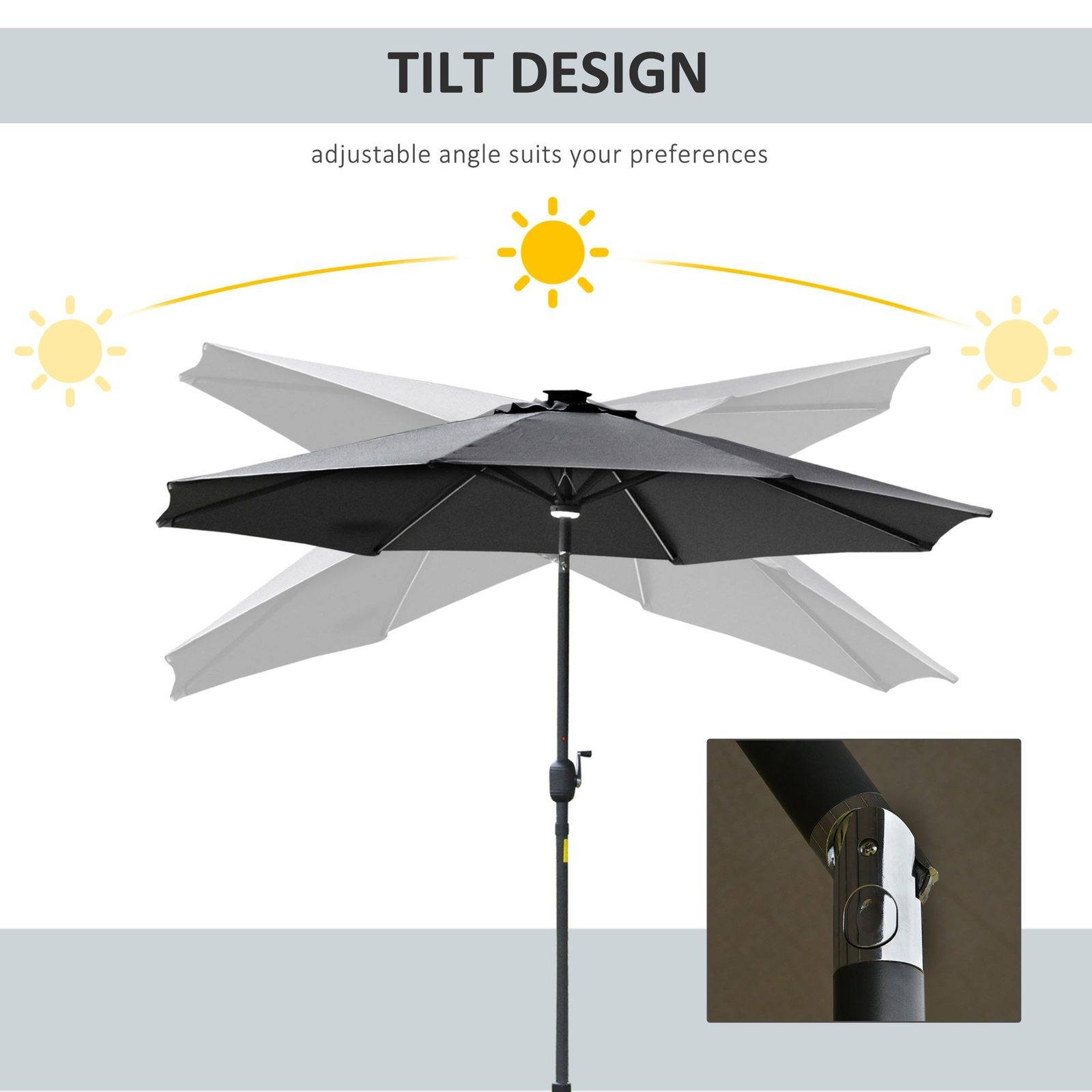 2.7m Garden Parasol Sun Umbrella w/ LED Solar Light Angled Canopy Grey