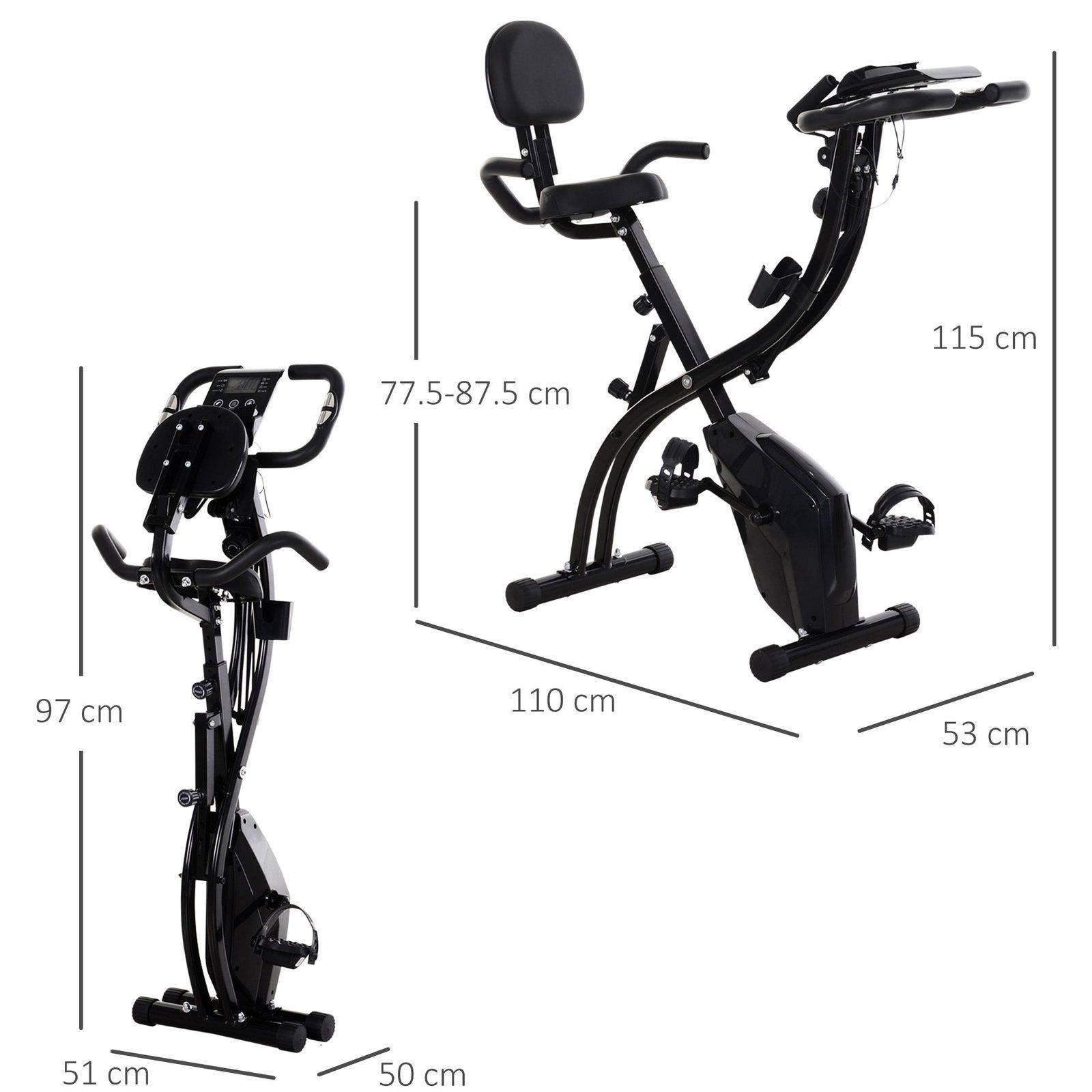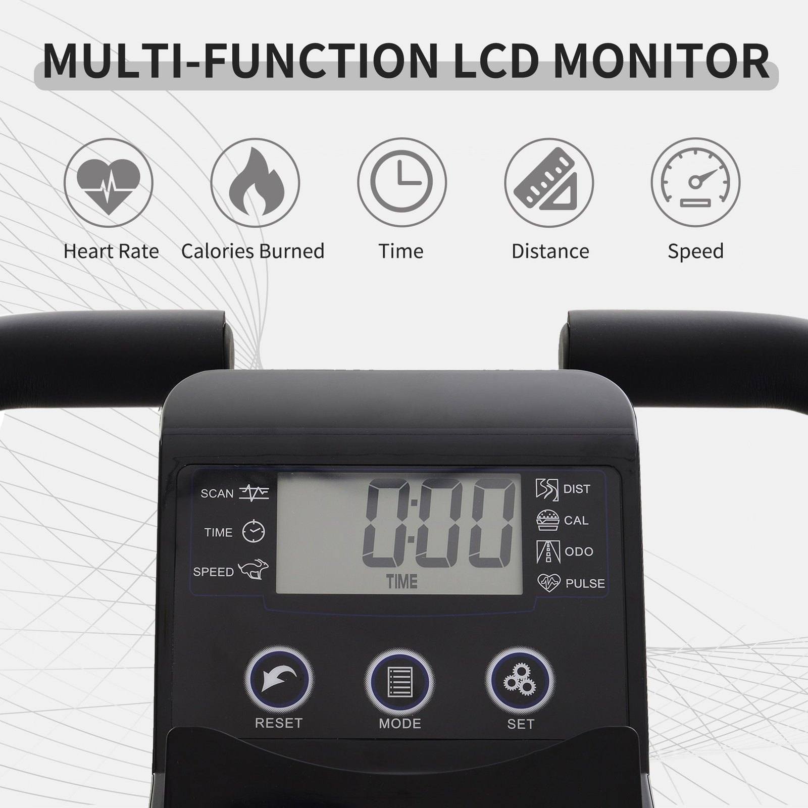 Get a complete cardio workout in the comfort of your own home with an indoor resistance adjustable exercise bike from HOMCOM. With the exercise bike with an LCD that tracks time, speed, distance, heart rate, and calories burned you can monitor your progress while you work out. Come with a phone holder, you can watch your favorite shows during exercise. It can be used as an upright exercise bike, a recumbent bike, and a tension rope to help improve upper body strength.