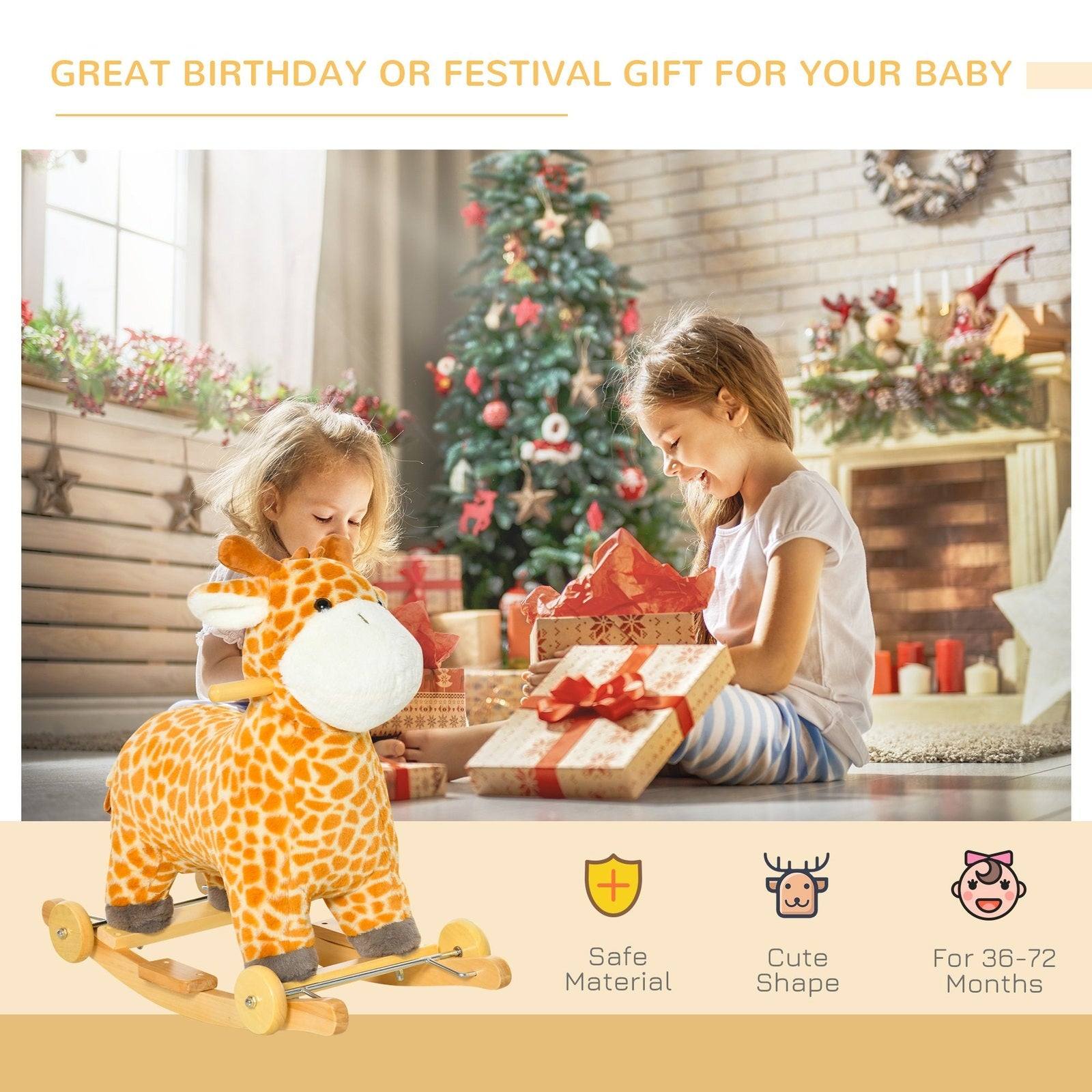 2 In 1 Kids Todder Rocking Horse Plush Ride On Giraffe Rocker with Wheels Wooden Base Animal Sounds for 36-72 Months