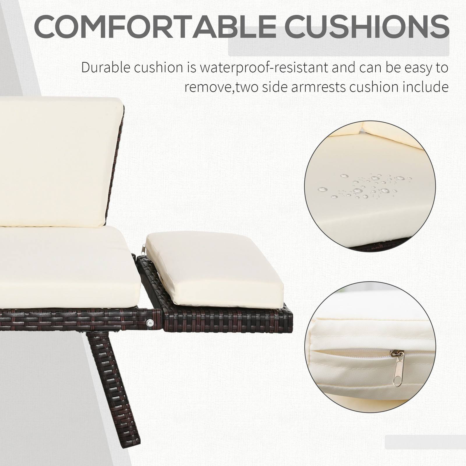 Make your outdoor times even better than before with this convertible sofa from Outsunny. A 2-in-1 design, it features side armrests which can be left up or down, giving you greater choice when it comes to choosing how you want to relax outdoors. For the underlying frame, reinforced steel is used to ensure ensuring strength and stability, with PE rattan hand woven around for a look which blends in with your garden effortlessly, whilst protecting the bed from light weather damage. Its finished with thick padded cushions which ensure youll be resting comfortably all day long. A great way to laze a sunny afternoon away.