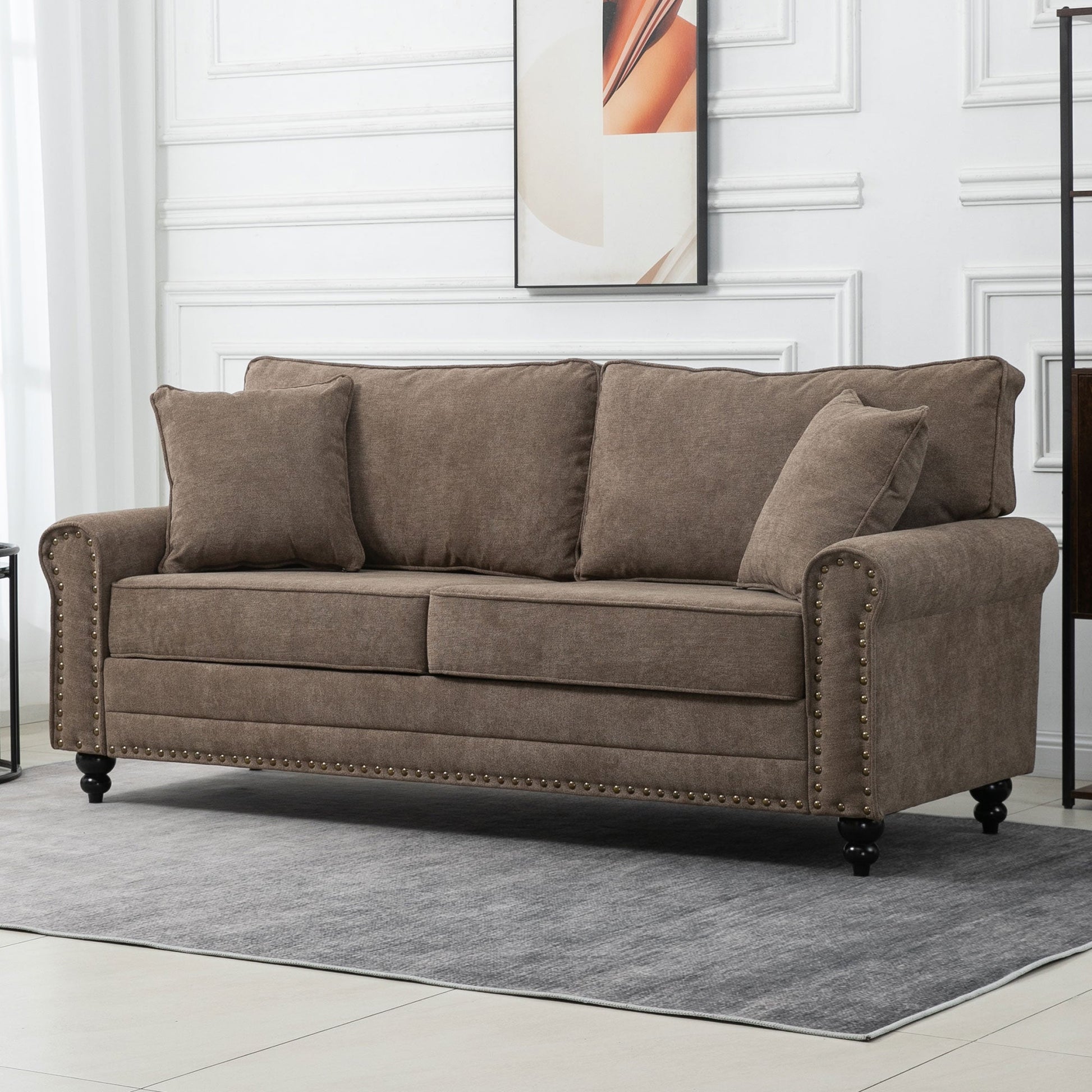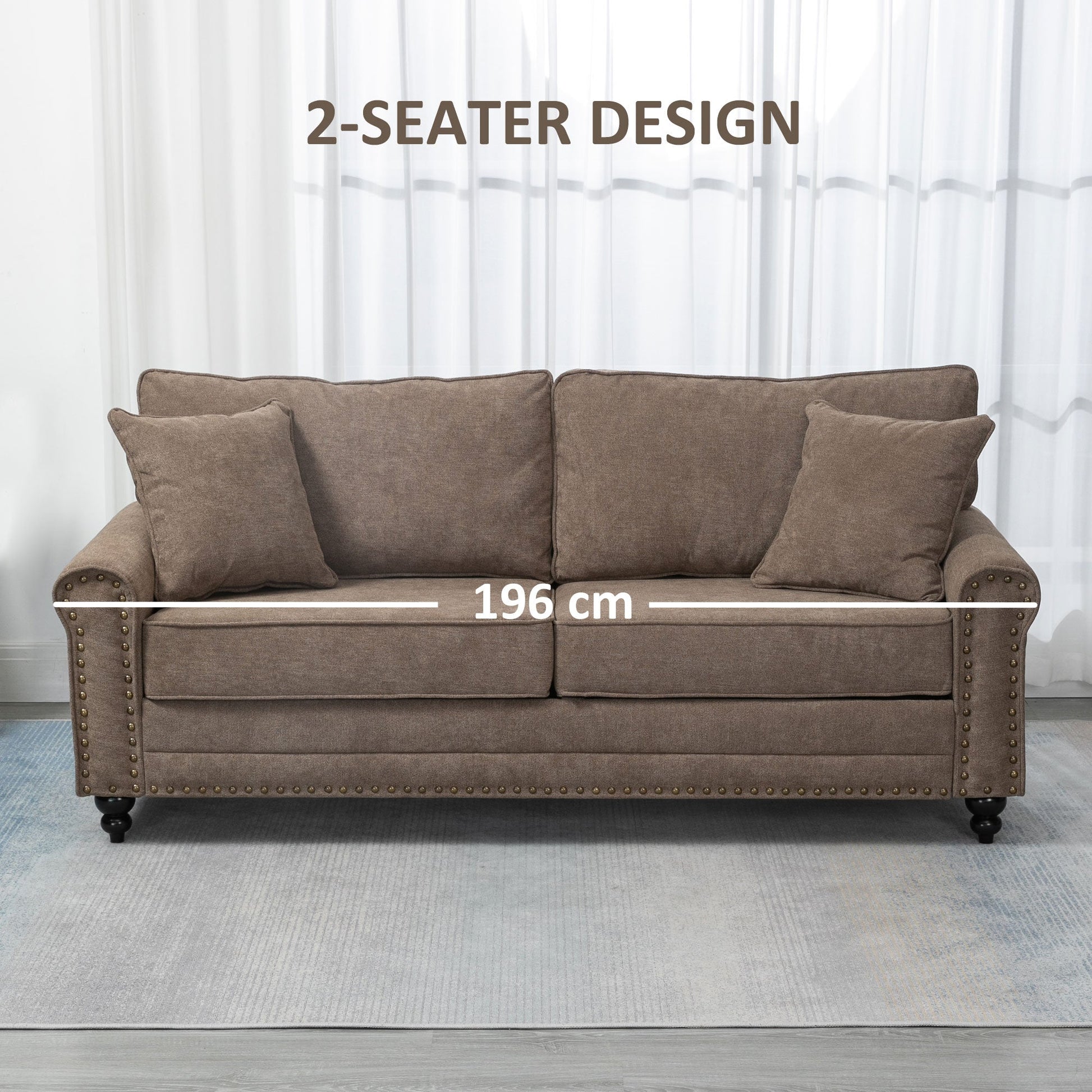 A small couch which doesn't skip the comfort. This HOMCOM piece is great for all rooms, no matter how big or small. The two-seater size provides enough room to relax with company or by yourself. Thickly padded on the seats and backs, with two cushions included for comfort. Wooden legs offer plenty of support. Linen-look upholstery looks great, with stylish studding on the front to complete.