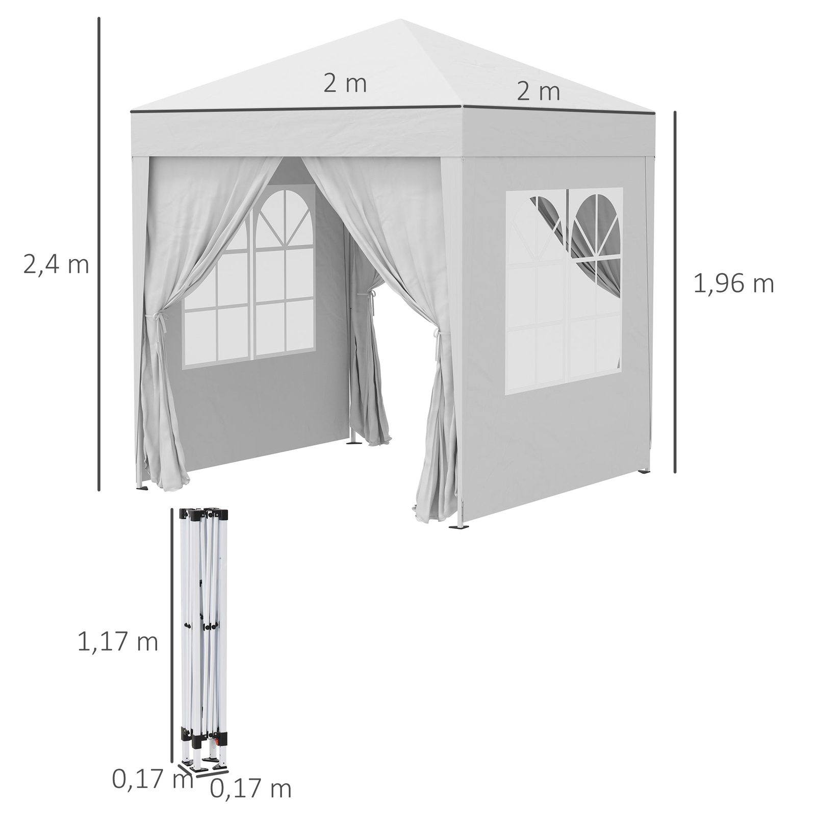 This New 2X2M Outdoor Gazebo is a great, no-fuss outdoor shelter. It is Ideal for family parties, weddings, picnics, sports events, outdoor vendors, craft fairs, job sites and camping trips. This easy up canopy provides easy set-up and take down in less than one minute. It also comes with a portable carrying case. This garden shelter has a high quality Powder Coated Steel Frame which has High Strength and is suited for winter time.