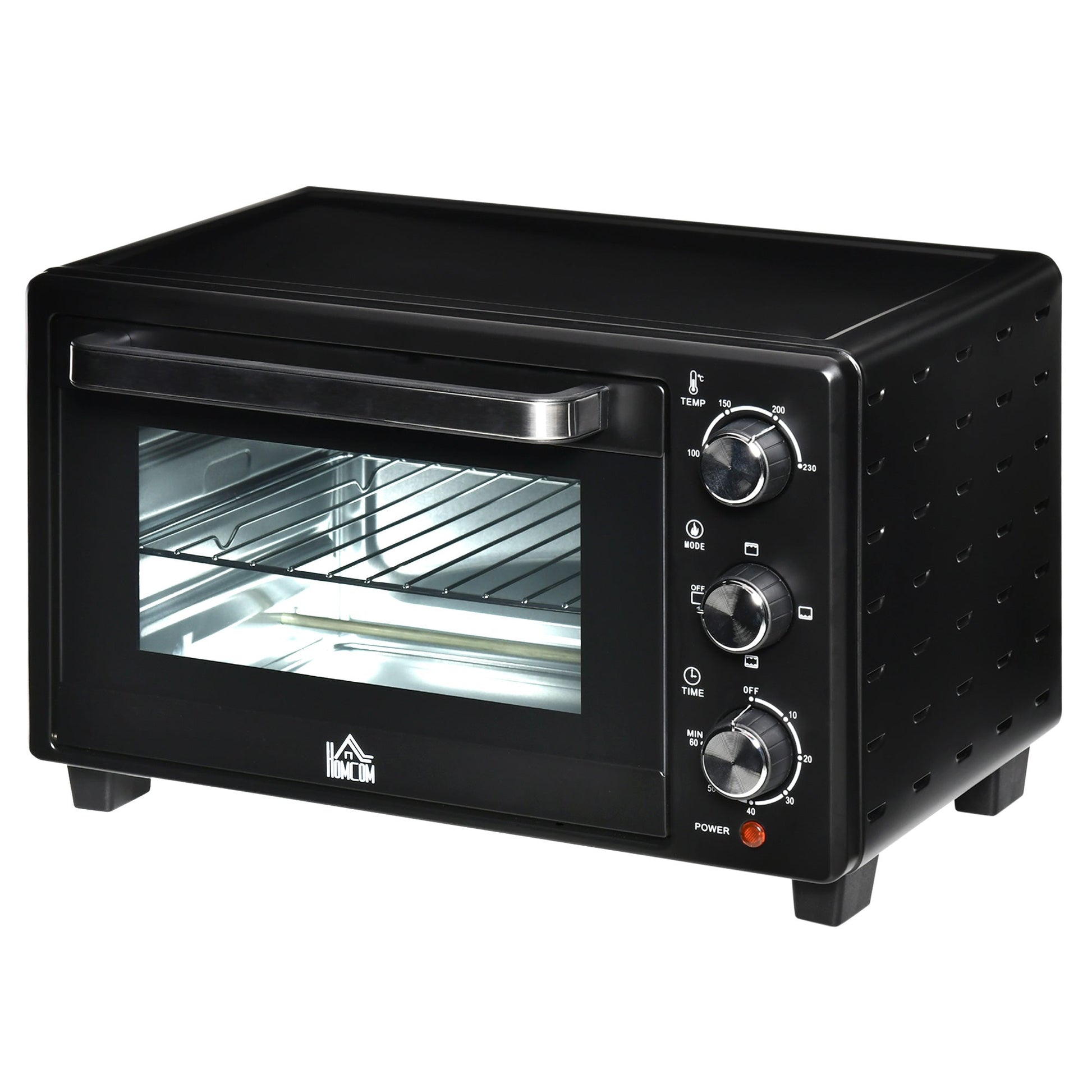 Whatever the space or size, it's easy to cook a wide variety of food with this HOMCOM 21L mini oven. Comes with a removable wire rack and cooking tray, with three different holding levels to reposition easily. The heat range, between 100°C and 230°C, means you can cook at different temps - no unneeded burnt food! the 0-60 minutes timer means it will switch off when you need it to, without being in the same room. Comes complete with tray handle, so you don't have to touch hot metal.