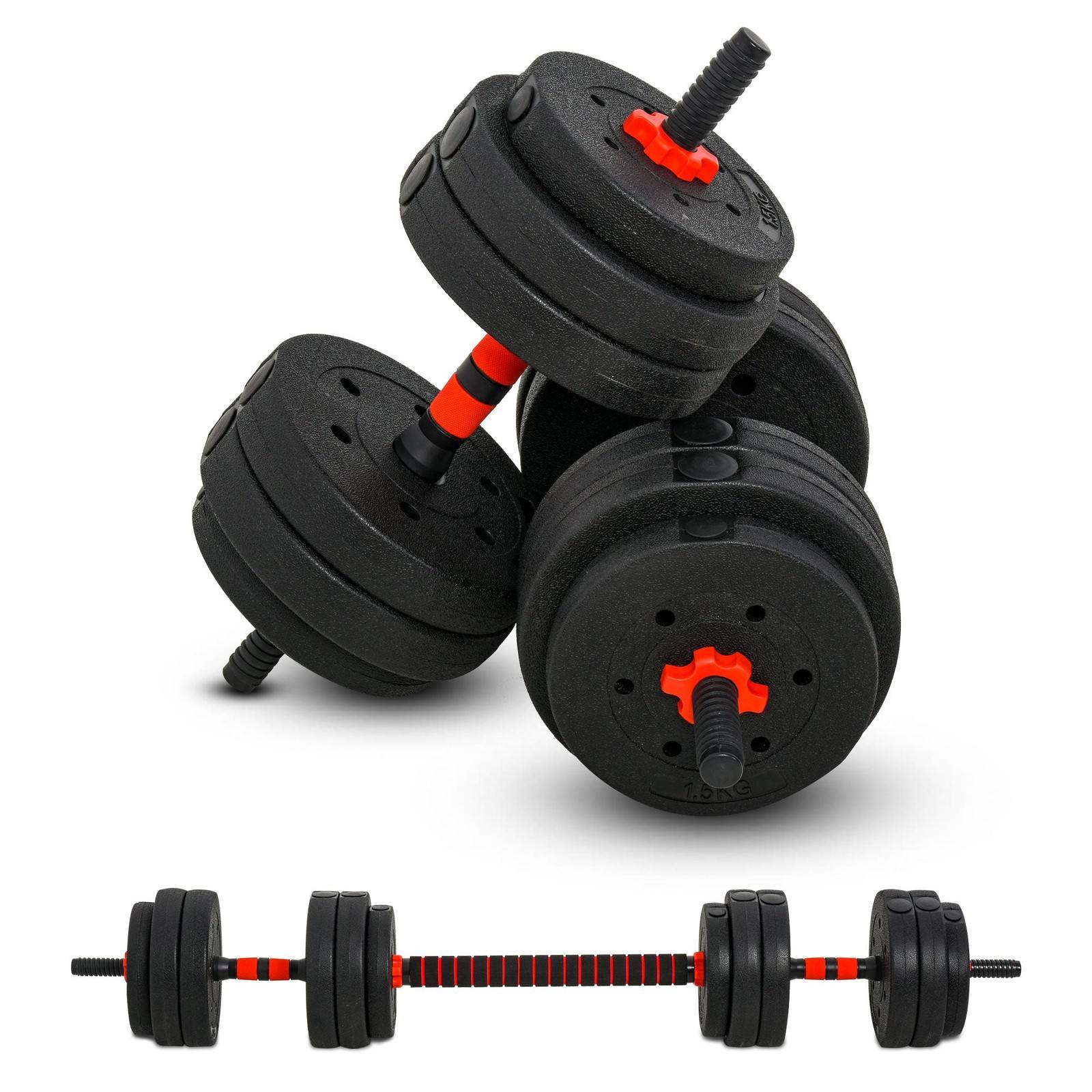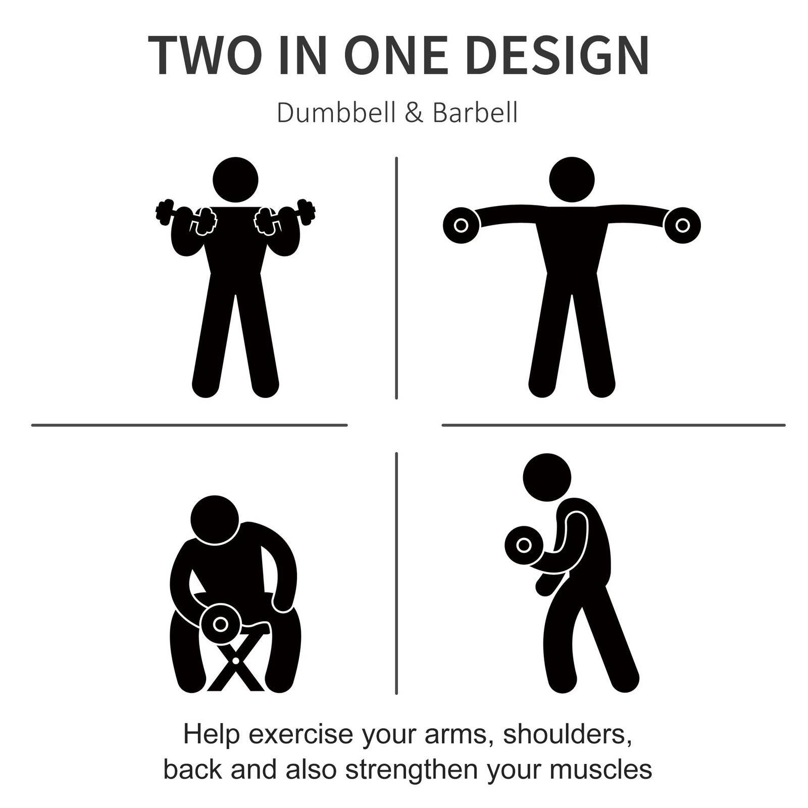 This two-in--one dumbbell set, from HOMCOM, can be used as dumbbell or barbell - it's super easy to switch up your routine whenever you desire. Comes with: 4 x 1.5kg dumbbell, 4 x 2kg dumbbell, 4 x 2.5kg plates and 1kg rods - you can build up the weight you want - suitable for beginners and experts. The combination of both dumbbell and barbell makes it suitable for a variety of upper and lower workouts, like bicep curls, squats, presses and raises. A great way to start your fitness journey.