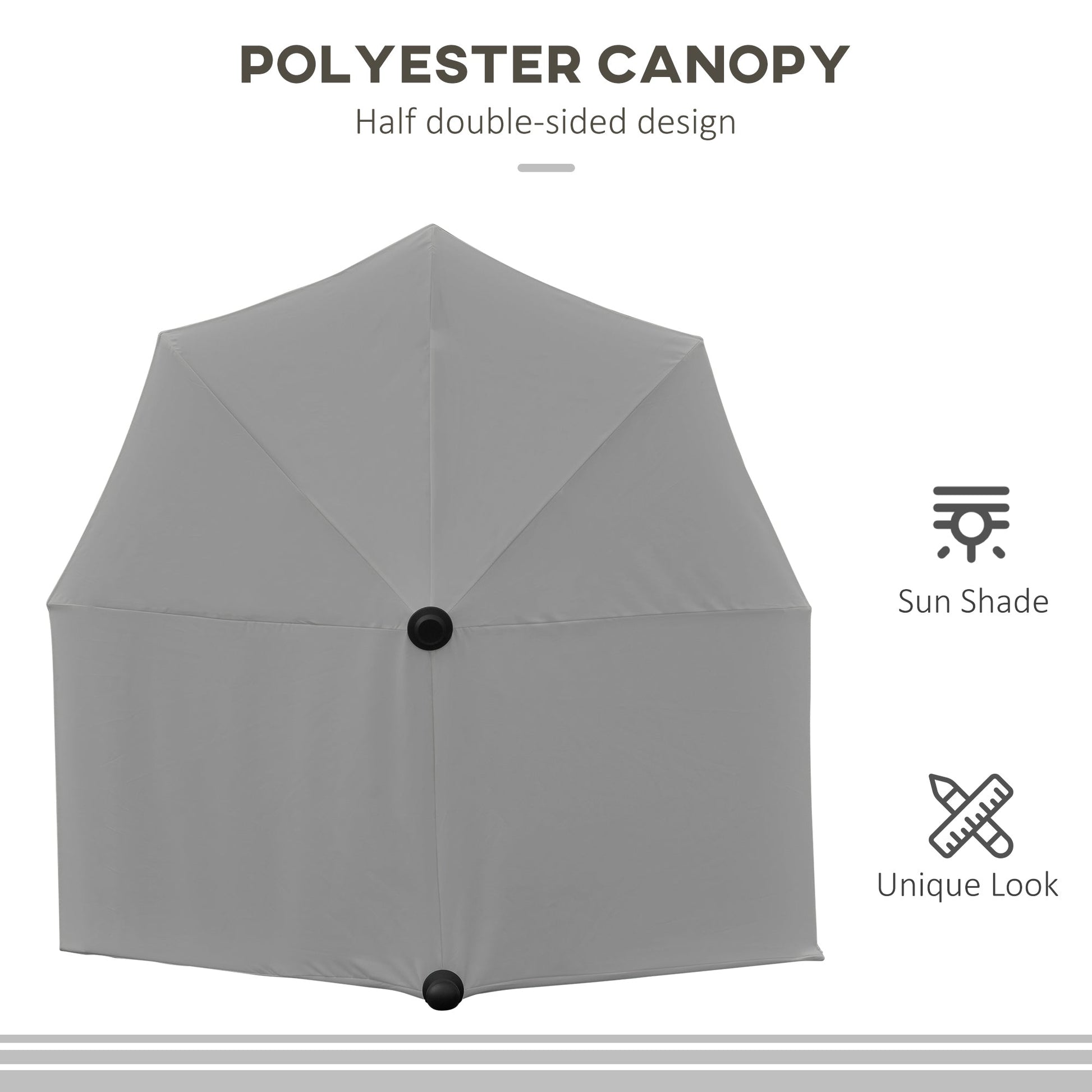 Need a garden parasol for the seasons head, but limited on space? Go for this Outsunny half parasol. The half-cut size means it will stand against your wall without any gaps, creating safe shade whether it's against a wall, window or fence. Yet, the extra-long canopy creates more shade than standard, keeping everyone safely protected when relaxing in the sun. Features a crank handle to open and close effortlessly, with a base included to stand in place (just ensure you use weights).