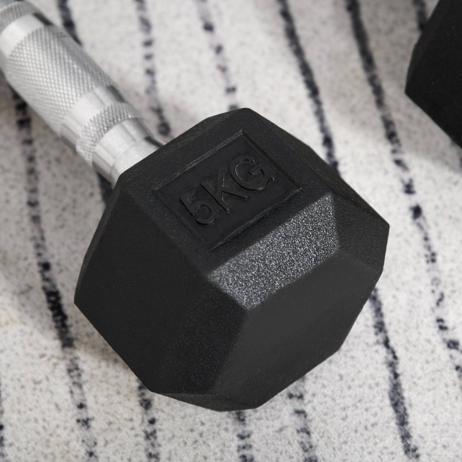 2x5kg Rubber Dumbbell Sports Hex Weights Sets Gym Fitness Lifting Home