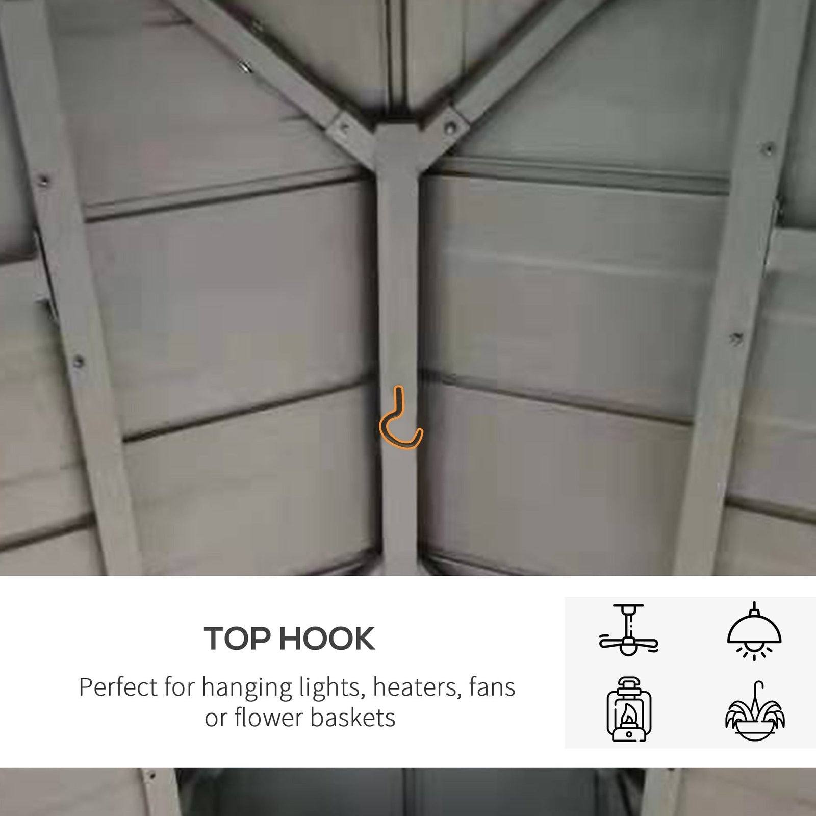 Forging the contrast between natural and an industrial edge, this wooden garden pavilion is a superb way to host outdoor gatherings and beyond. The 3.4m x 3.4m size means it's equally spacious all over, with the open design giving so much room to house plenty of your guests. The frame, made from wood to ensure it's strong, is fitted with a galvanised metal roof: a strong protective top, sheltering underneath from rain and wind. The top vent help keeps air flow in and out the top regular.