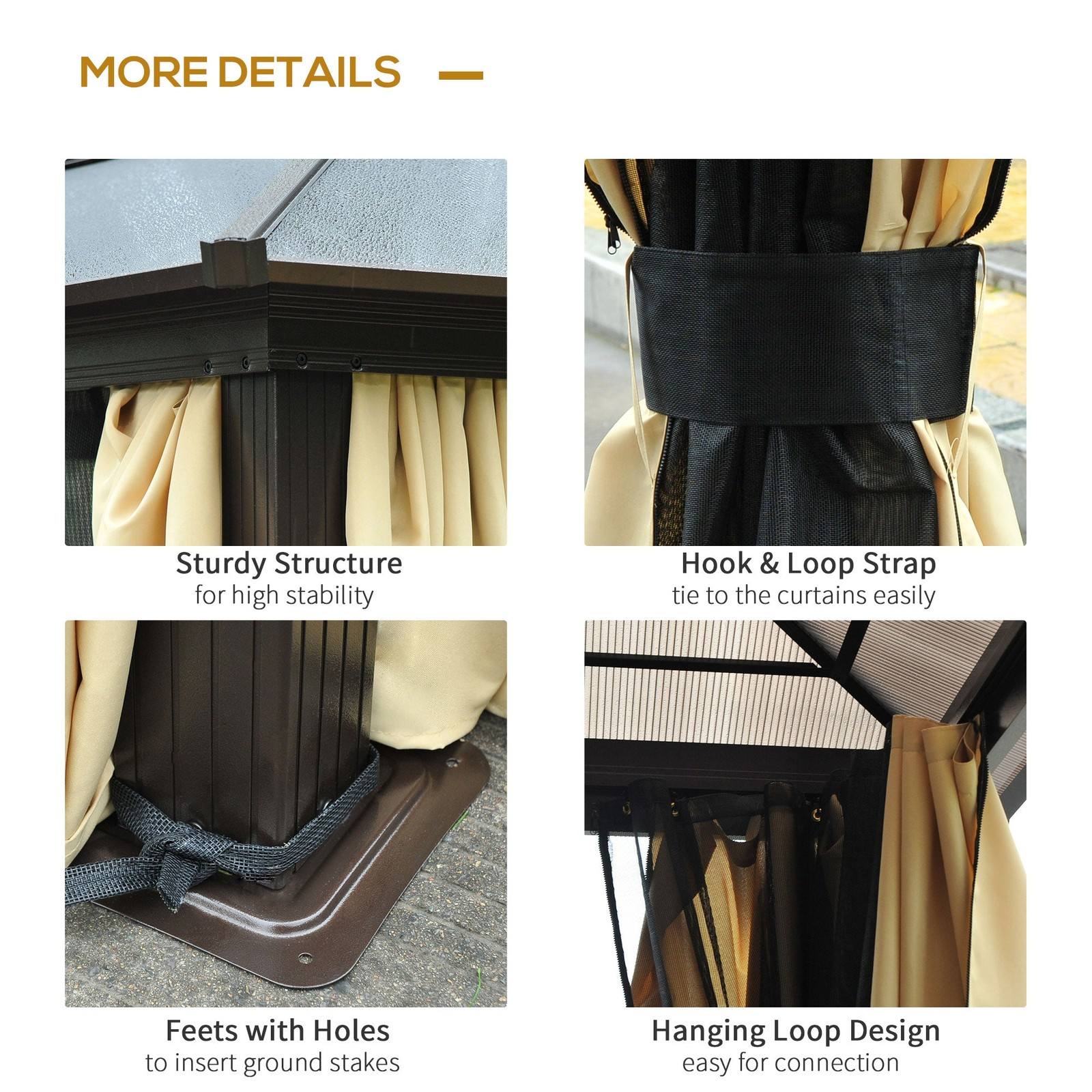 Create the perfect spot to hold your outdoor gatherings with this impressive deluxe gazebo from Outsunny. Crafted from polycarbonate into an angled design in a sleek finish, the hardtop roof, protecting you from water and UV whilst located inside. Its finished with four large curtains, each with a mesh screen, providing privacy when required and keeping out bugs and insects at the same time. A grand way to impress your guests every time. Eight ground stakes included for extra security.