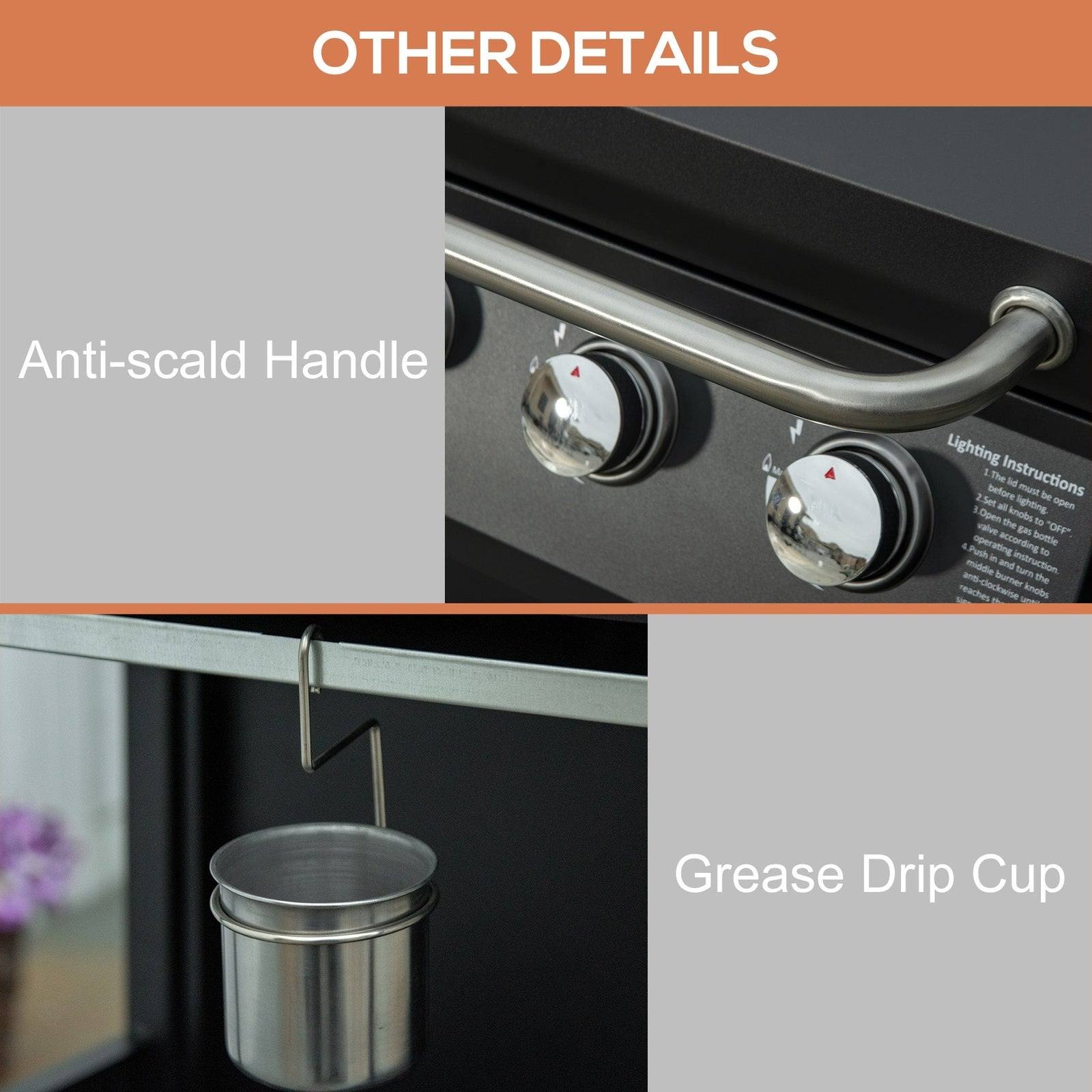 3 Burner Gas BBQ Grill Outdoor Portable Barbecue Trolley With Warming Rack