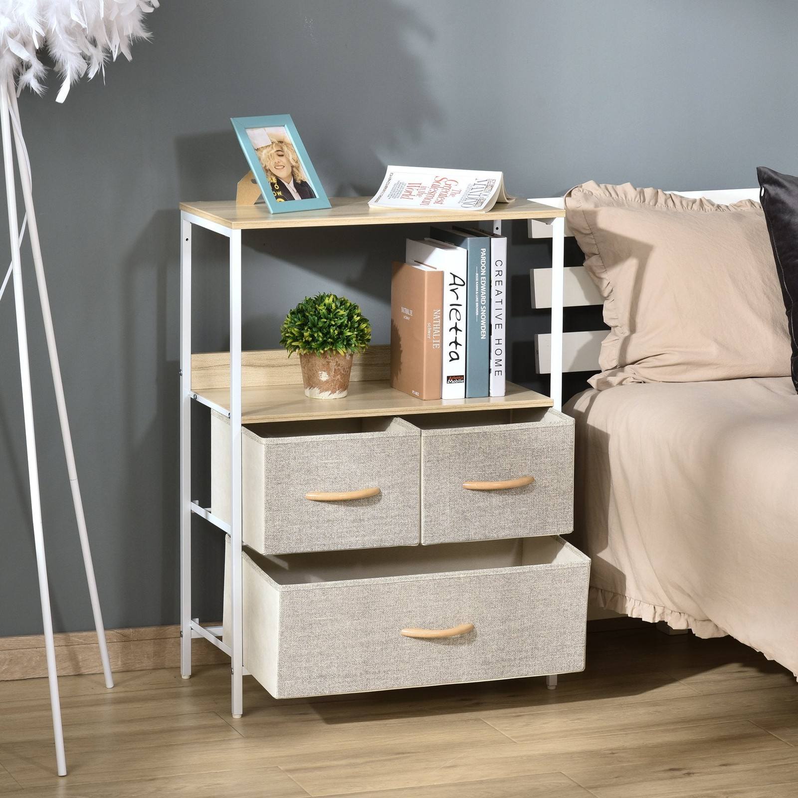 Opt for a soft approach to home storage - go for this fabric drawer unit from HOMCOM. Comes with two small drawers and a large, with two shelves on top to give you plenty of storage and display room respectively. The frame, made from metal, ensures a sturdy core structure, with adjustable bottom feet to keep the balance at all times. Finished with wood-effect handles on the drawers to open and close them easily.