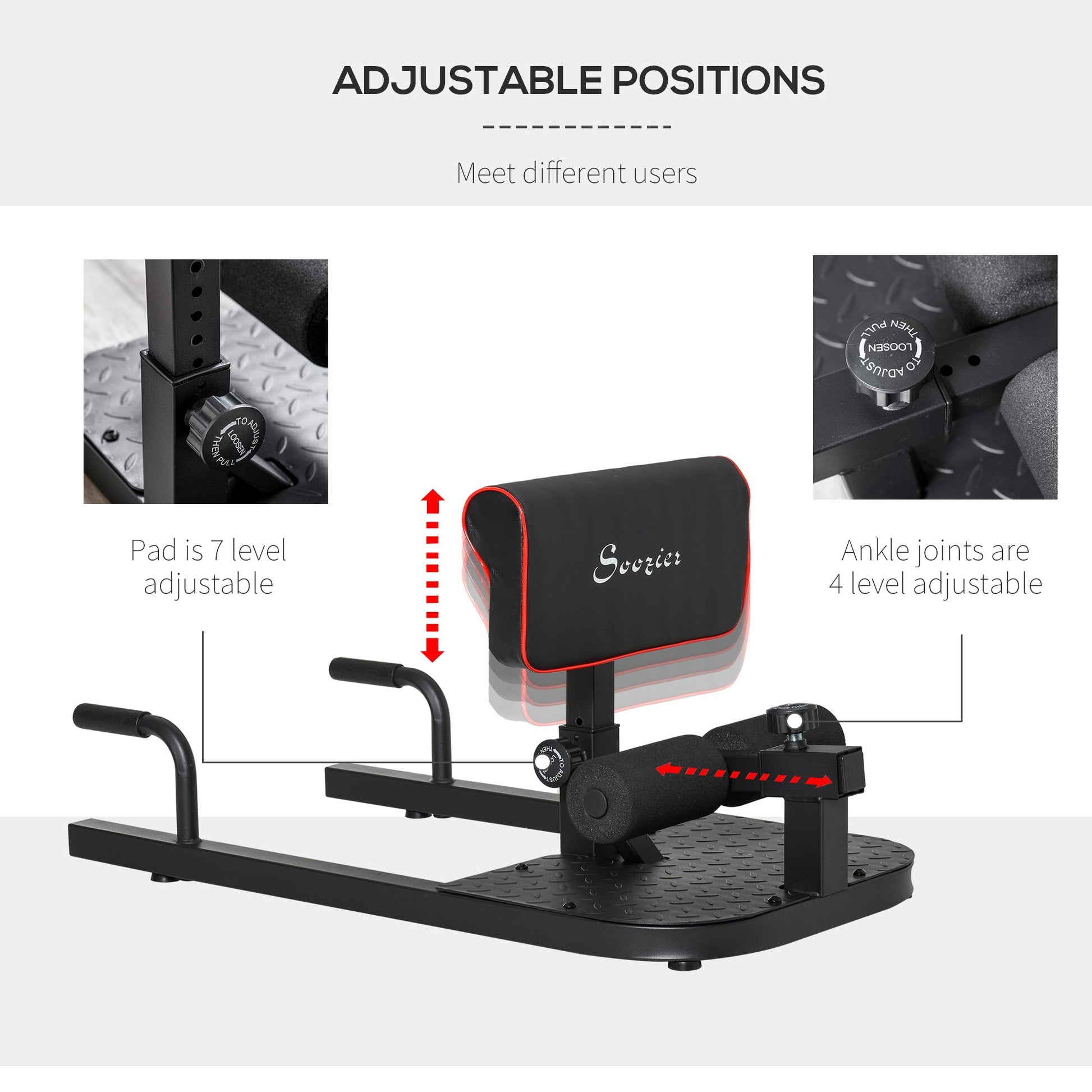 This Squat Machine from HOMCOM to helps you do exercise for your whole body in one workout. You can lay back over the support bar for sit-ups, or use the dual handles at the back of the machine for elevated push-ups and planks to work your entire body. The height adjustable pads make this equipment versatile for all body types. Four suction cups keep the machine securely on the floor while you work out. Start building your perfect body today with this 3-in-1 squat machine!