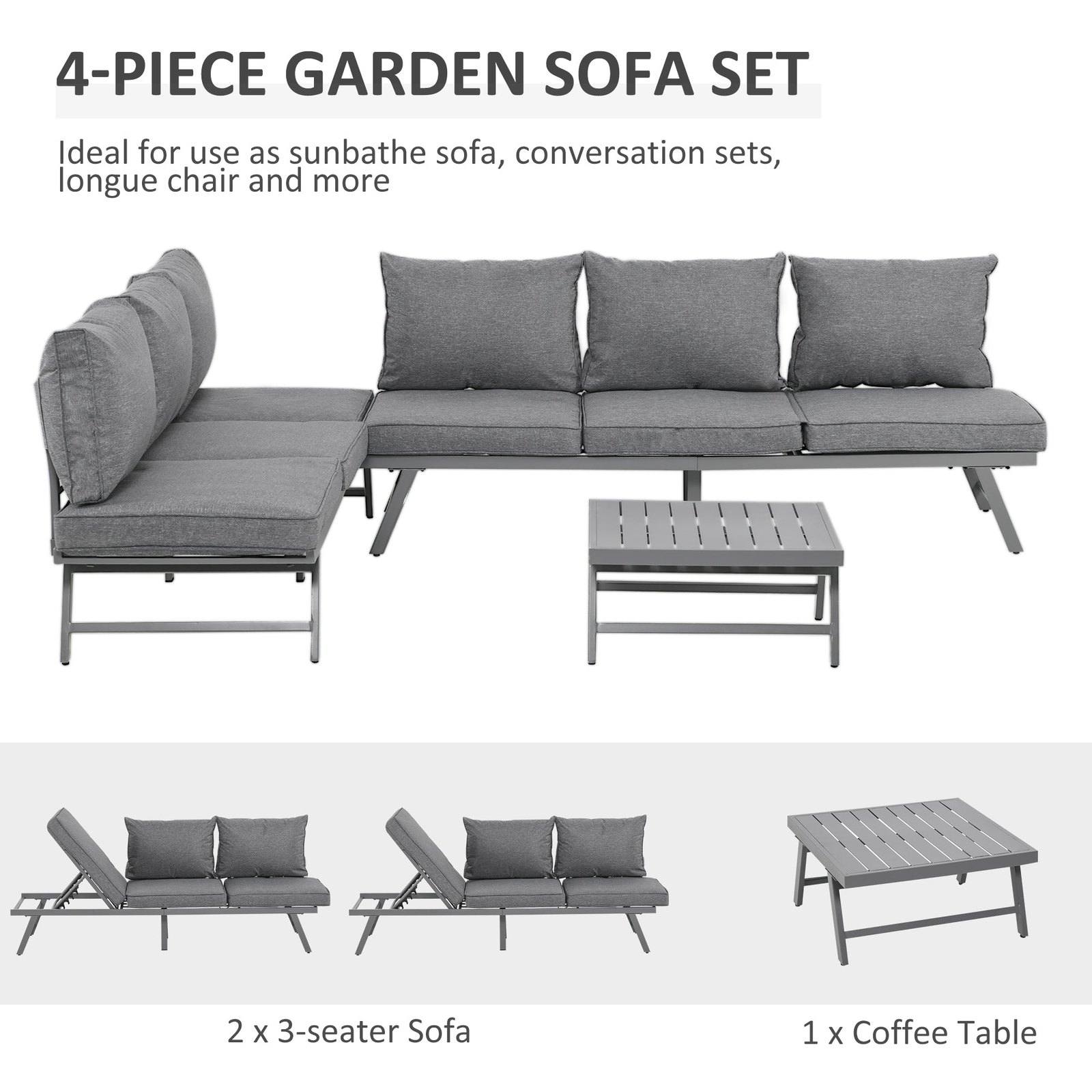 Whether you want to relax with a few friends, or transform your outdoor time into lounging, go for this patio set from Outsunny. The two sofas can be changed into a lounger, where the backs can be set to four different positions, as well as removed. There are thick cushions on the seats and backs for comfort - you'll find it hard to get up once sat down! The metal garden furniture set is complete with a matching square table, giving a solid and safe place for keeping everything you need near you.