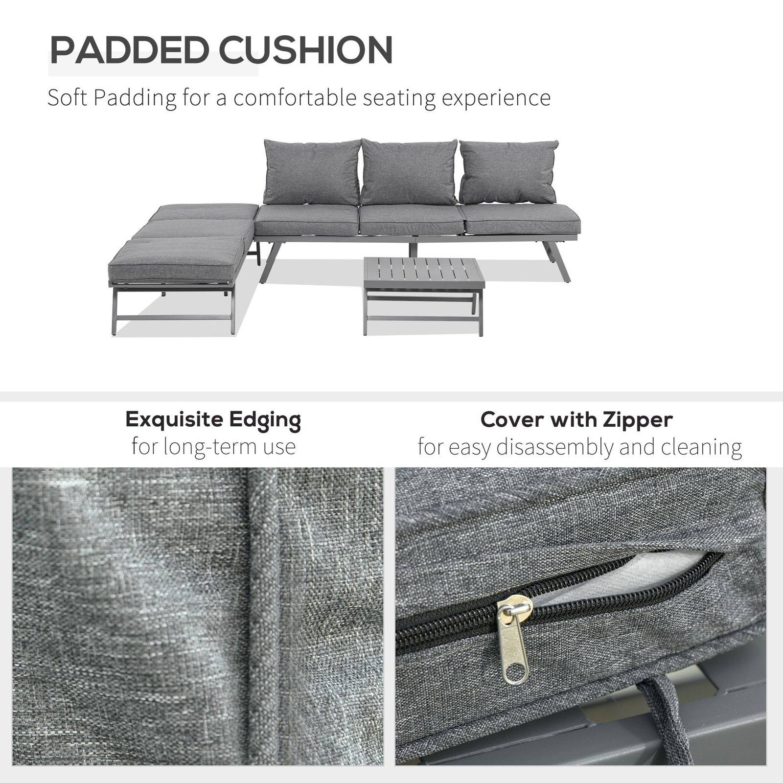3-Piece Garden Seating Set w/ Convertible Sofa Lounge Table Padded Cushions Outdoor Patio Furniture Couch Grey