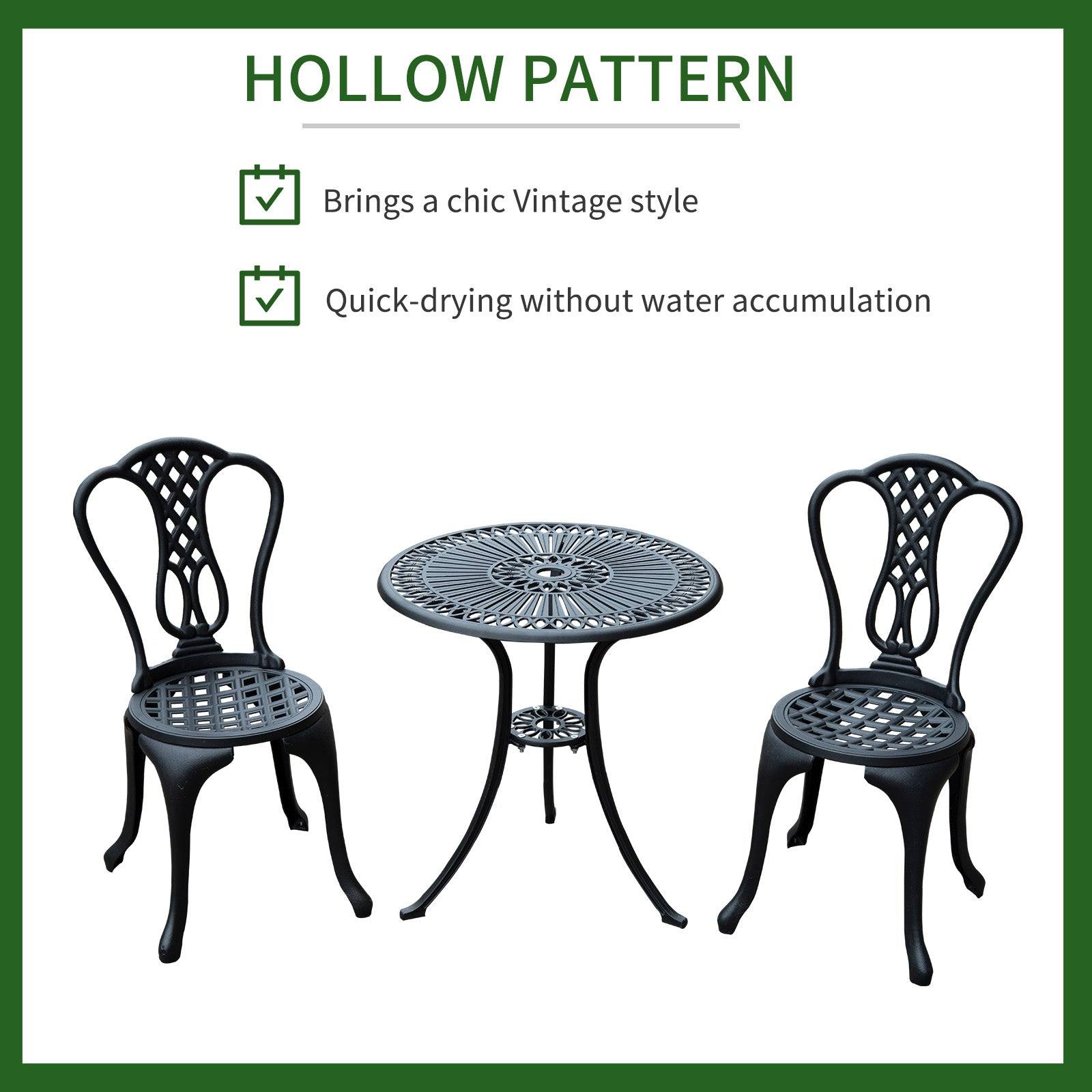 3-Piece Patio Cast Aluminium Bistro Set Garden Outdoor Furniture Table and Chairs Shabby Chic Style