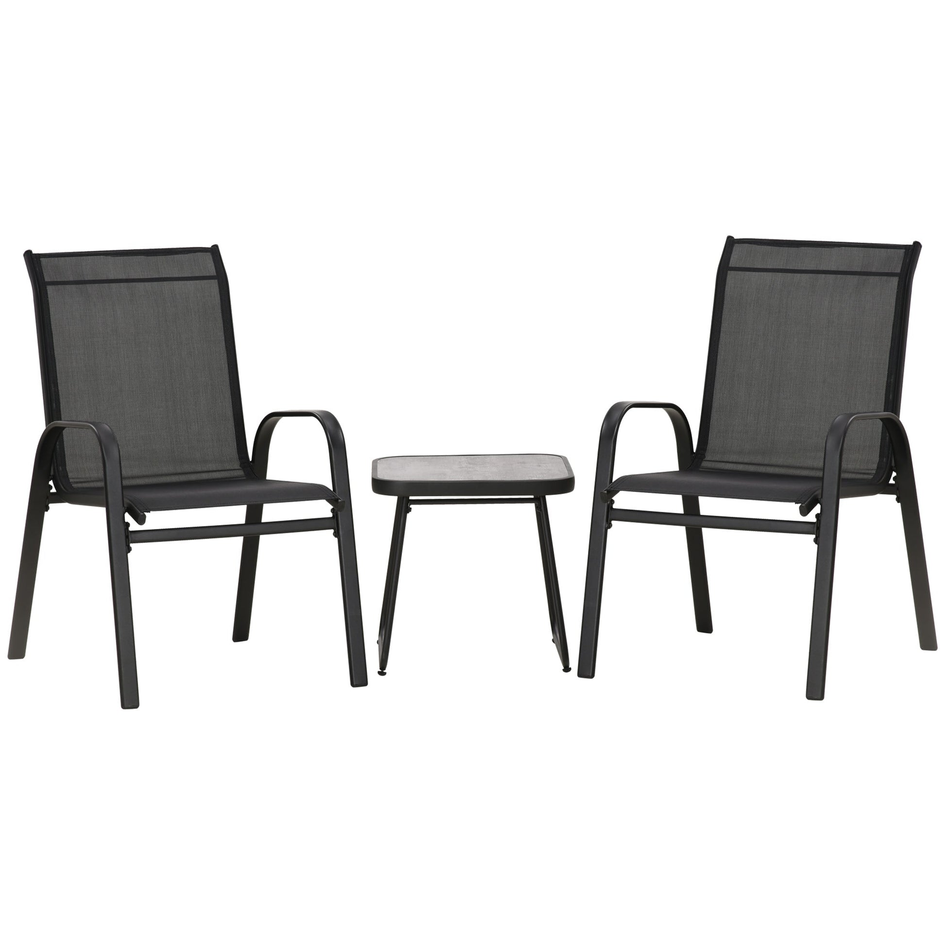 This Outsunny three-piece set is great for relaxing with company outdoors. Comes with two chairs and table. Each piece has a steel frame: strong and supportive. A great addition for all outdoor spaces.