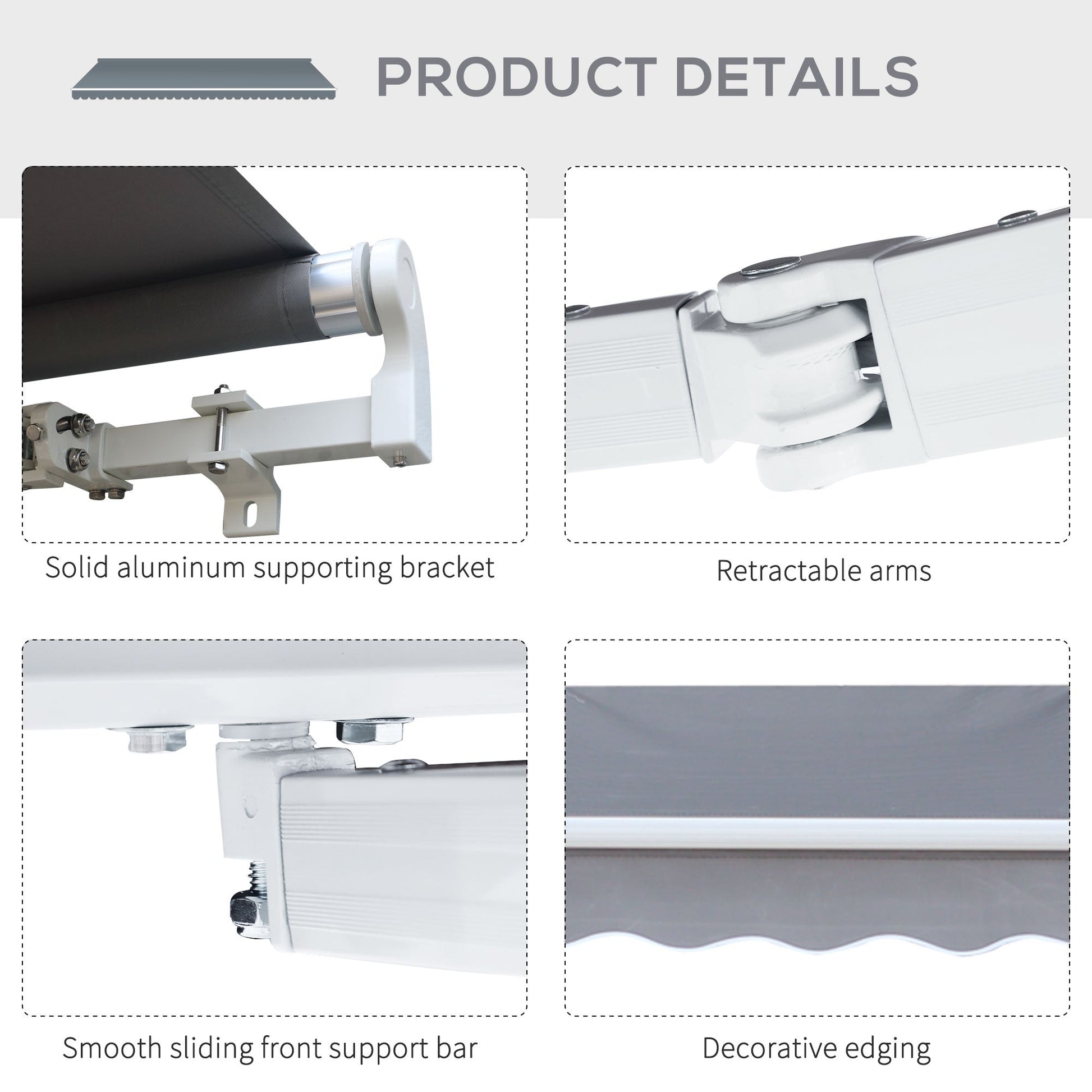 With a thick sun-shielding canopy fixed on an aluminium frame, this 2.95 x 2.5m awning from Outsunny will give you all the shade you need this season. The manual design means you can set it up wherever needed - whether it's above a door or window, and it easily mounts onto your chosen surface with all accessories included in the package. Finished with a crank handle for easy operation. It's time to enjoy the beauty of outdoors more than ever before.