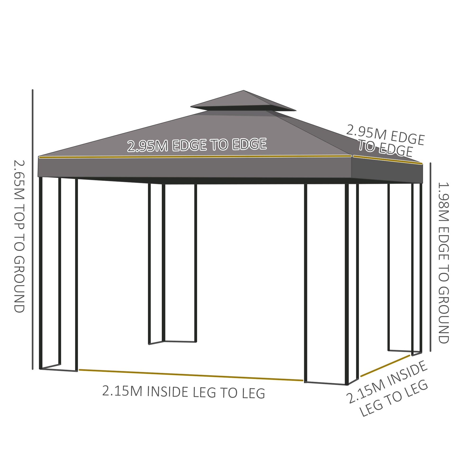 3 x 3 m Garden Metal Gazebo Marquee Patio Wedding Party Tent Canopy Shelter with Pavilion Sidewalls Brown