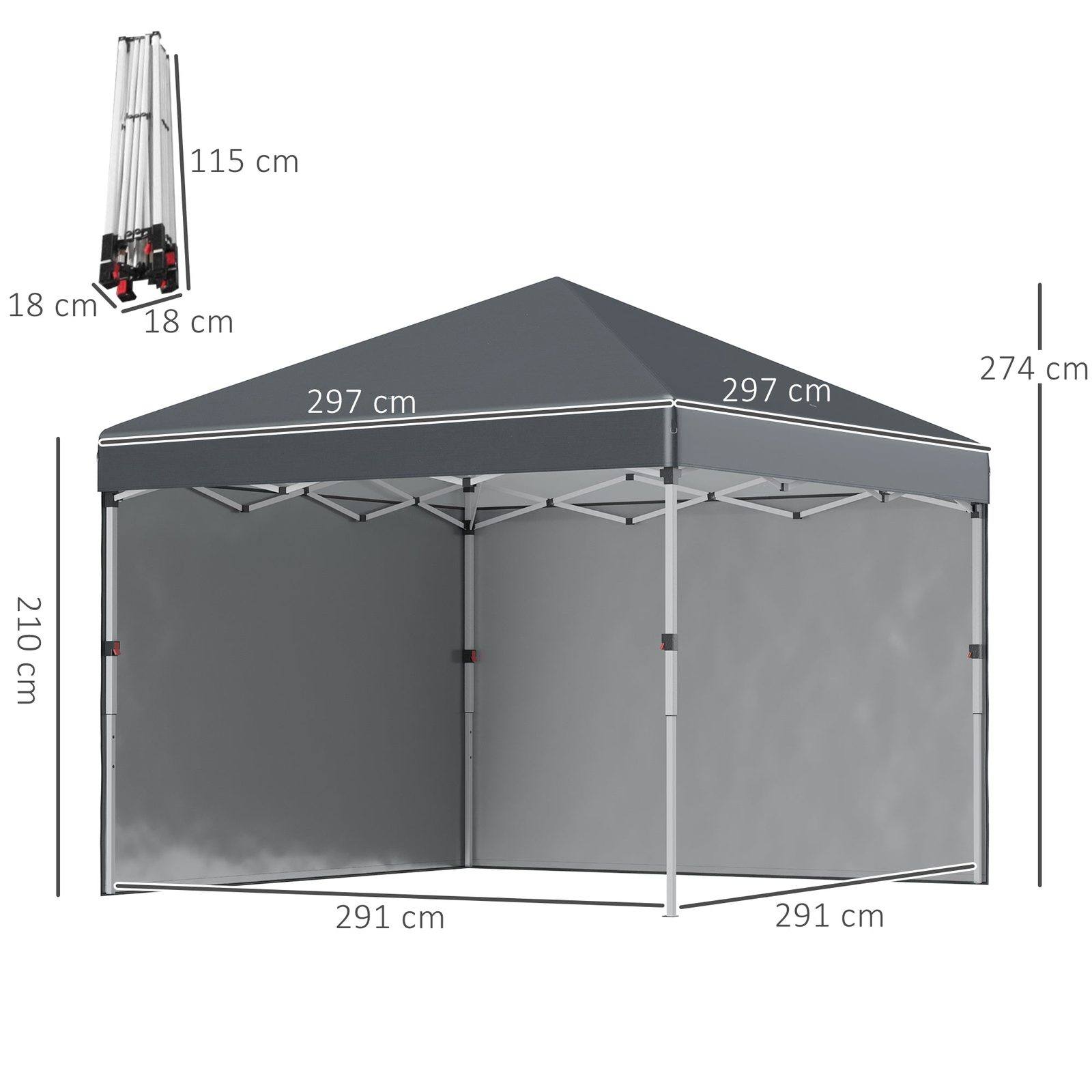 - Overall Dimensions: 297L x 297W x 274H cm