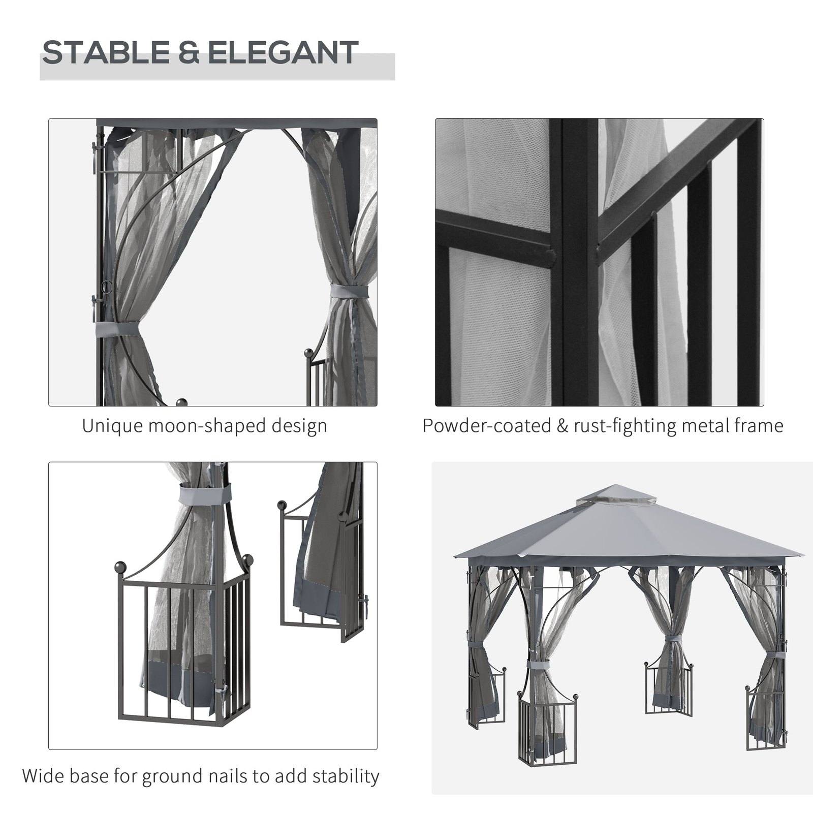 Bring life back to your outdoor living space with this hot tub gazebo with sides from Outsunny. The steel frame gazebo offers optimum protection against harmful UV sunlight and rain. The slim lines and edge design ensures premium usage, while the included ground stakes offer added stability. The powder coated rust-resistant metal frame is designed to last for years of usage. The double tiers on the top offer better ventilation.