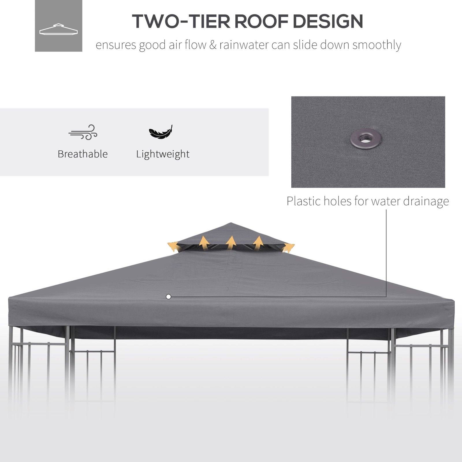 3M Gazebo Top Cover Double Tier Canopy Replacement Pavilion Roof Deep Grey