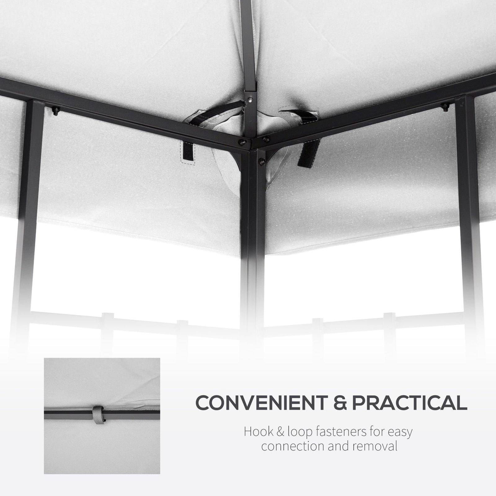 Bringing your gazebo back to life is super easy with gazebo covers replacement 3x3 from Outsunny. Made from quality polyester, with a PA coating for durability and protection against the sun and water. And the two-tier rooftop design of the 3x3 gazebo canopy replacement allows air to circulate when in use. Eight holes for water drainage. Update your garden hosting space in an instant with our gazebo canopy replacement covers 3m x 3m.