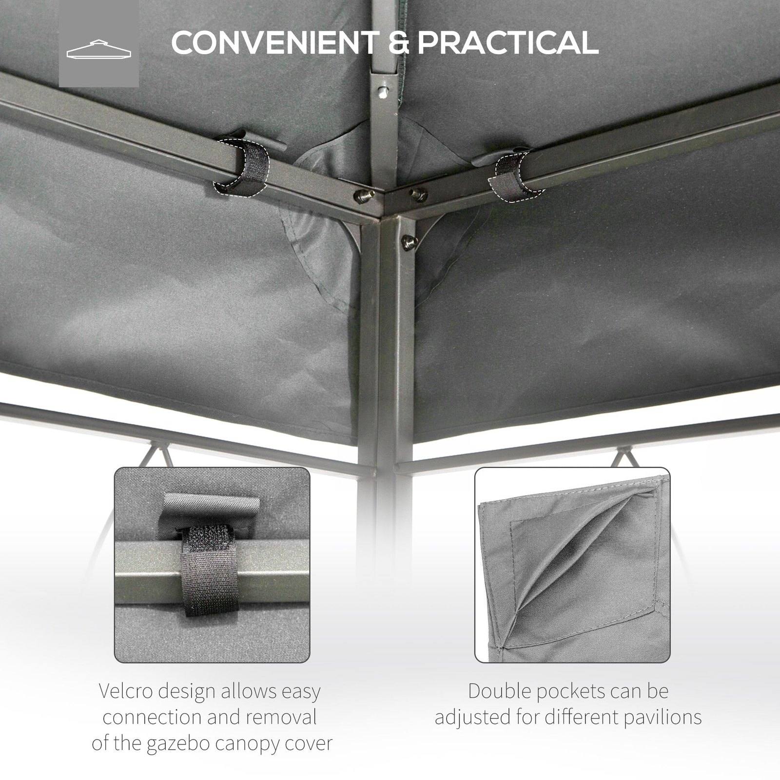 Bringing your gazebo back to life is super easy with this gazebo waterproof cover from Outsunny. Made from high quality polyester with a PA coating for durability and protection against the sun, it features a two-tier rooftop design to allow air to circulate when in use, alongside ten holes for water drainage. Our gazebo canopy replacement will fit 2.9-3Wm x 3.9-4Lm size frames (Outsunny sku 01-0153).