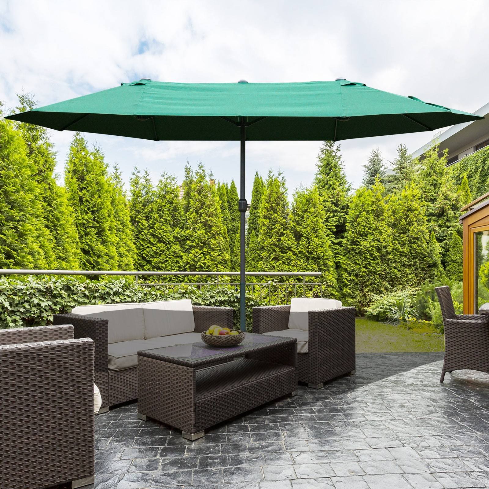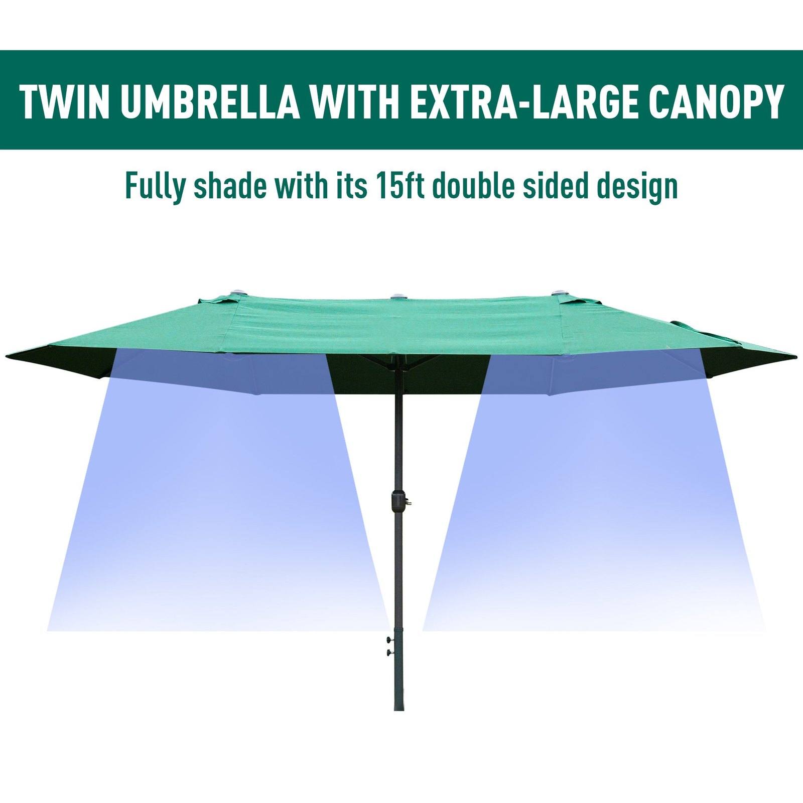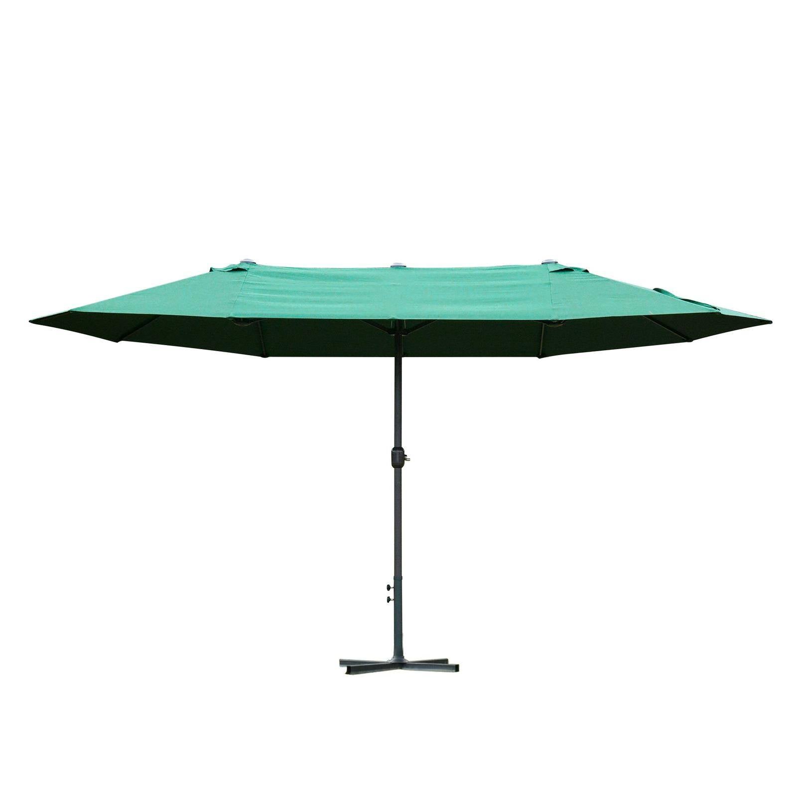 4.6M Sun Umbrella Canopy Double-sided Crank Sun Shade w/ Cross Base Dark Green