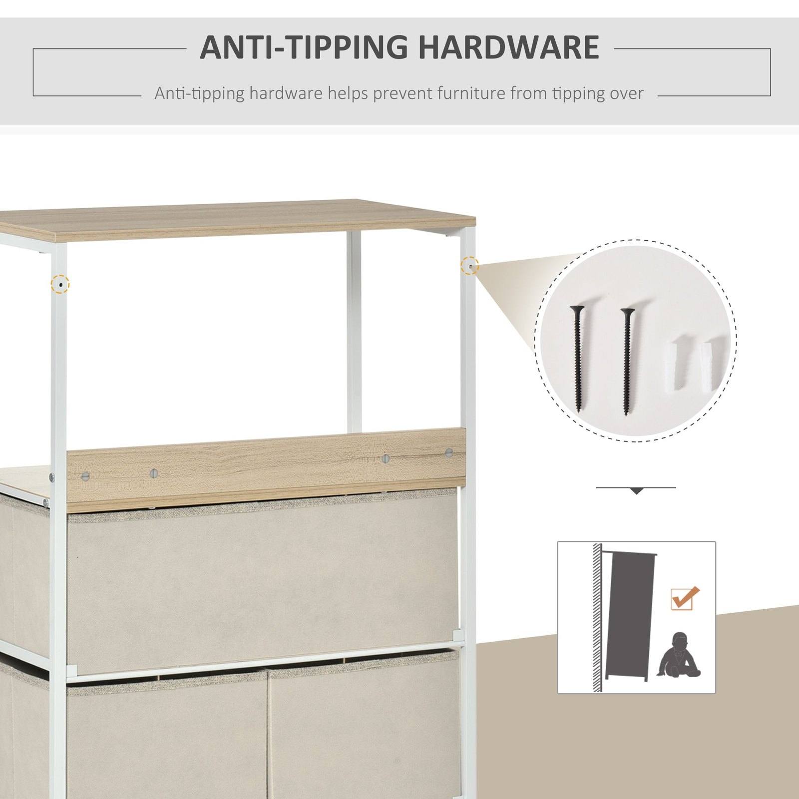 Opt for a soft approach to home storage - go for this fabric drawer unit from HOMCOM. Comes with two large and two small drawers, with two shelves on top to give you plenty of storage and display room respectively. The frame, made from metal, ensures a sturdy core structure, with adjustable bottom feet to keep the balance at all times. Finished with wood-effect handles on the drawers to open and close them easily.