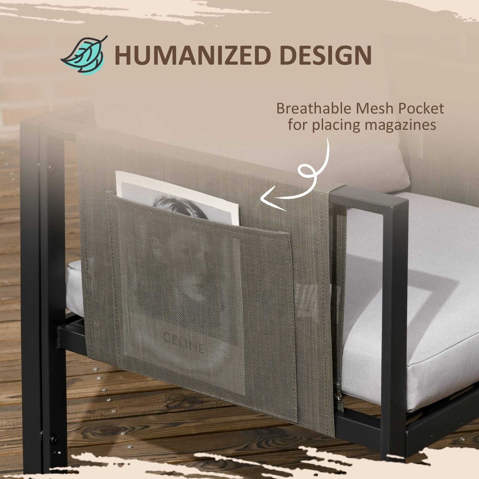 Let friends and family gather in a simple yet sleek style outdoors, thanks to this Outsunny set. Four pieces two armchairs, a two-seater sofa and a coffee table - seats up to four people. Each frame is made from steel: strong and supportive. Thick padded cushions on the seats and backs for comfort. Comes complete with a tempered glass-top table.