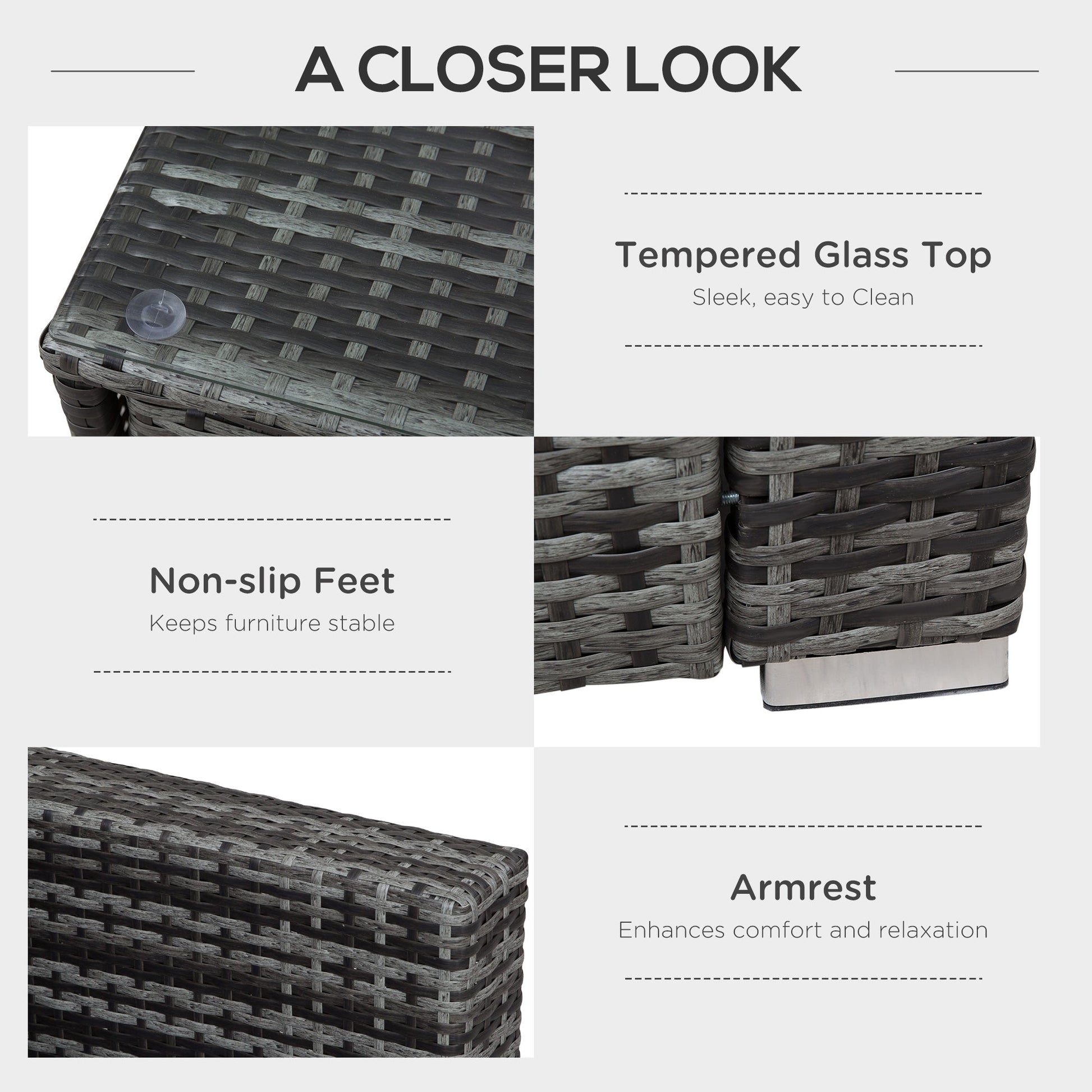 Generous in size and stylish in design, let this outdoor corner sofa from Outsunny take the lead for your outdoor leisure times this season. The small garden furniture consists of four pieces two two-seater sofas, a tall storage corner table and an oblong coffee table with drawers, giving you plenty of room to relax all day by yourself or with others. Discreet storage is located both on the tall corner table of the garden furniture sets, with two drawers in the oblong coffee table.