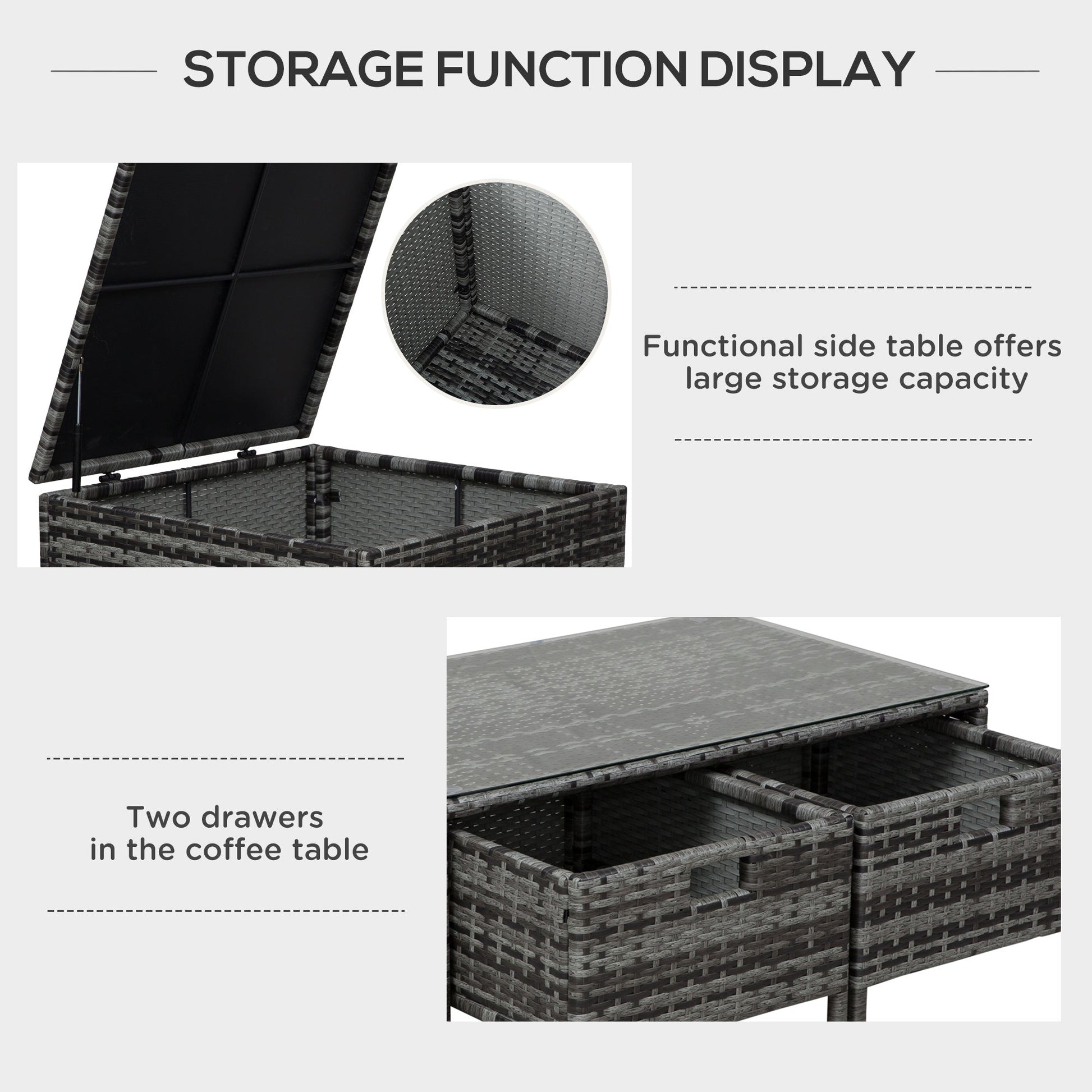 4-Piece Rattan Wicker Garden Furniture Patio Sofa Storage & Table Set w/ 2 Drawers Coffee Table