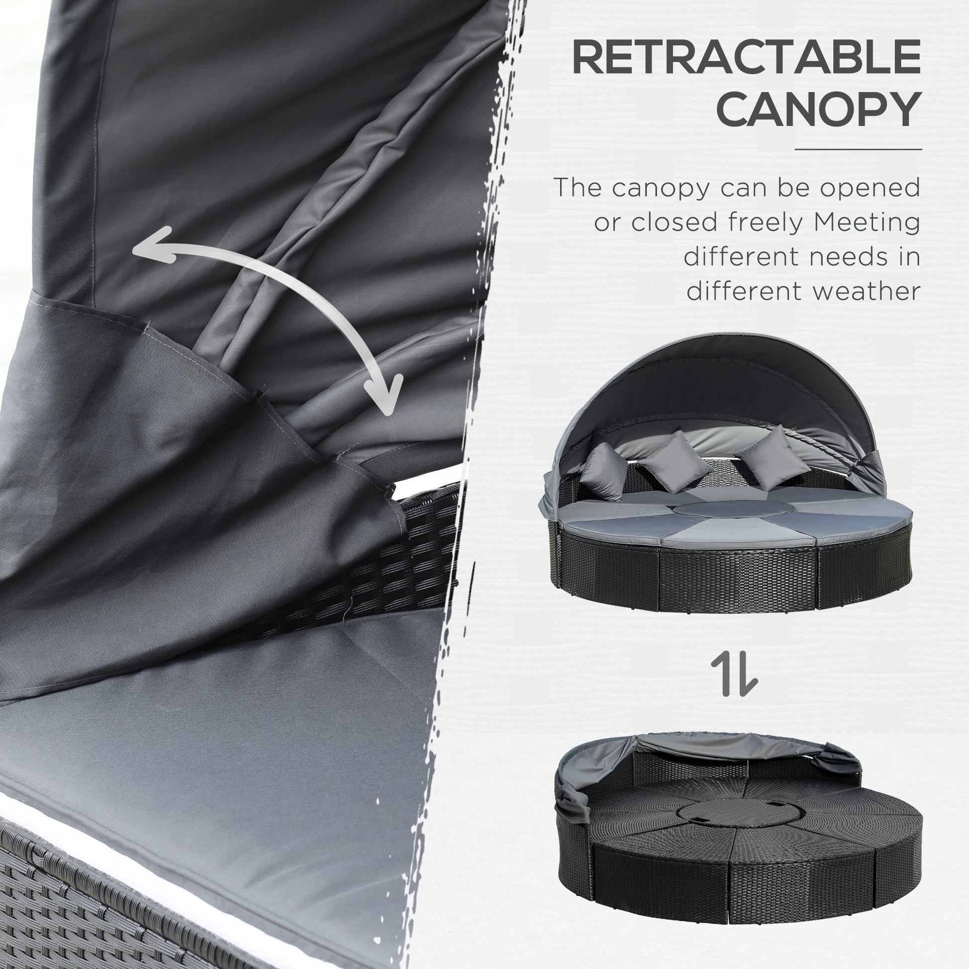 - Half Round Sun Lounger with Roof Dimension: 210L x 105W x 150H cm