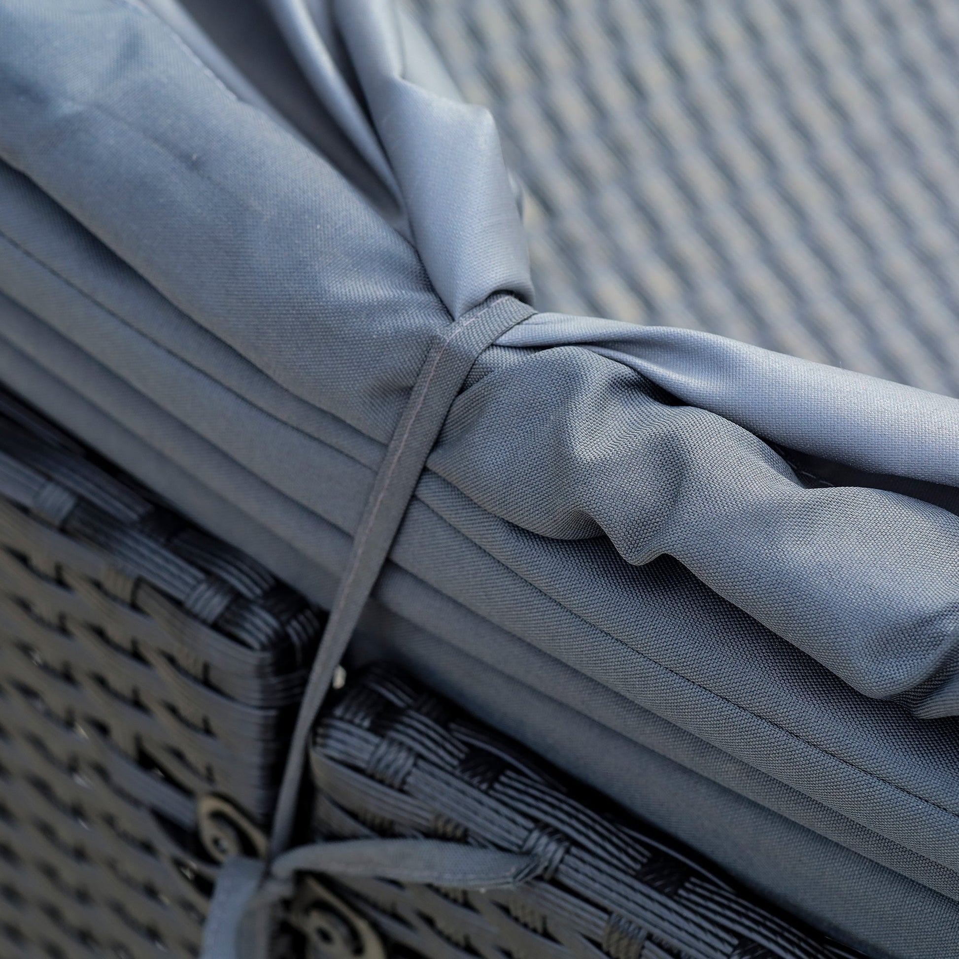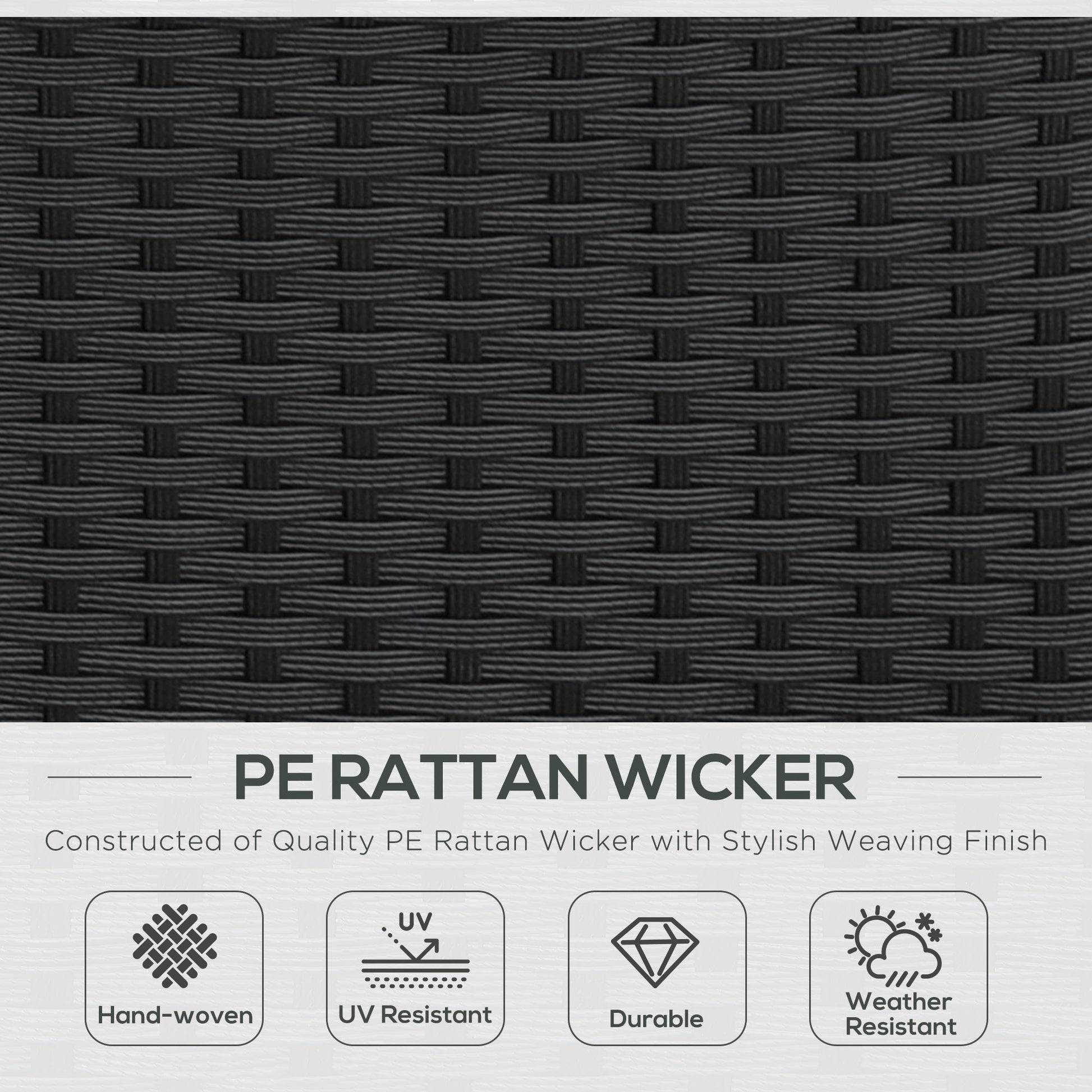 - Color: Black Rattan, Dark Grey Cushion