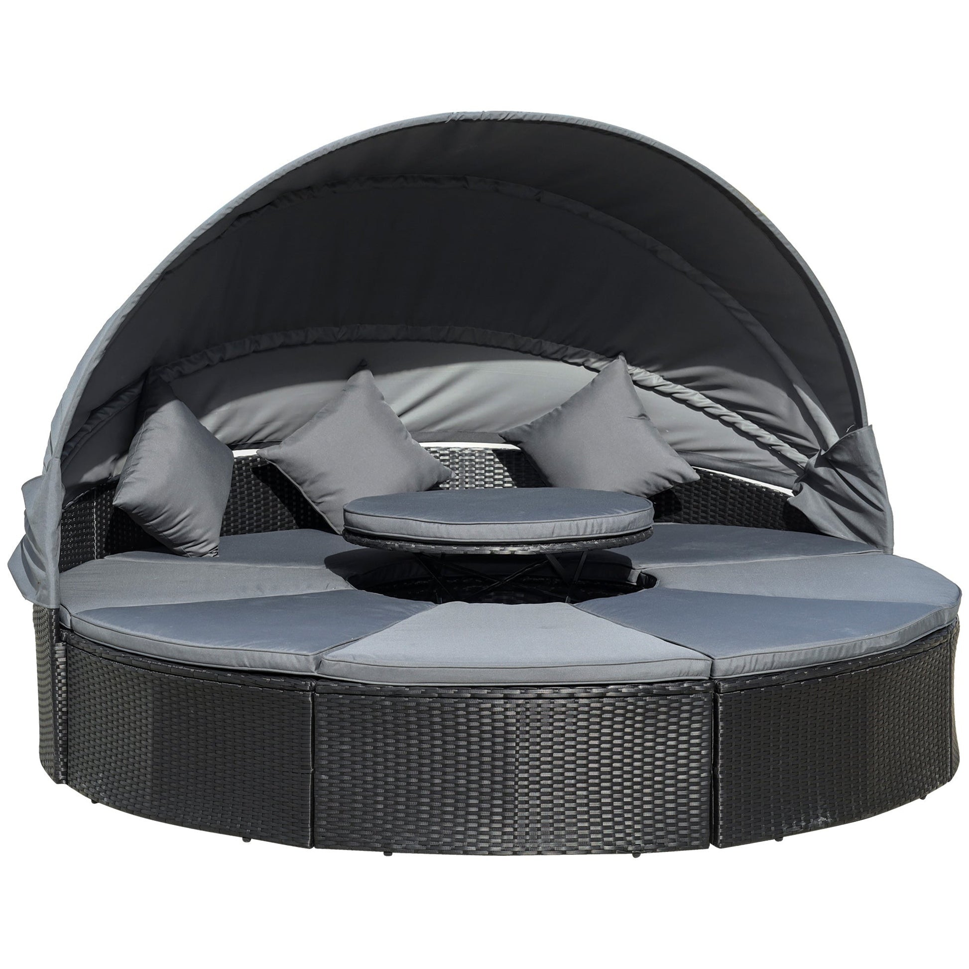 Introducing this sun bed from Outsunny: a hybrid of rattan loungers, but in the form a giant bed. Using four different pieces a half-moon sofa, two quarter chairs and a small round table, it is presented in a large 147cm x 180cm design, which gives you lots of room to relax with friends or even have plenty for yourself to laze a sunny afternoon away.