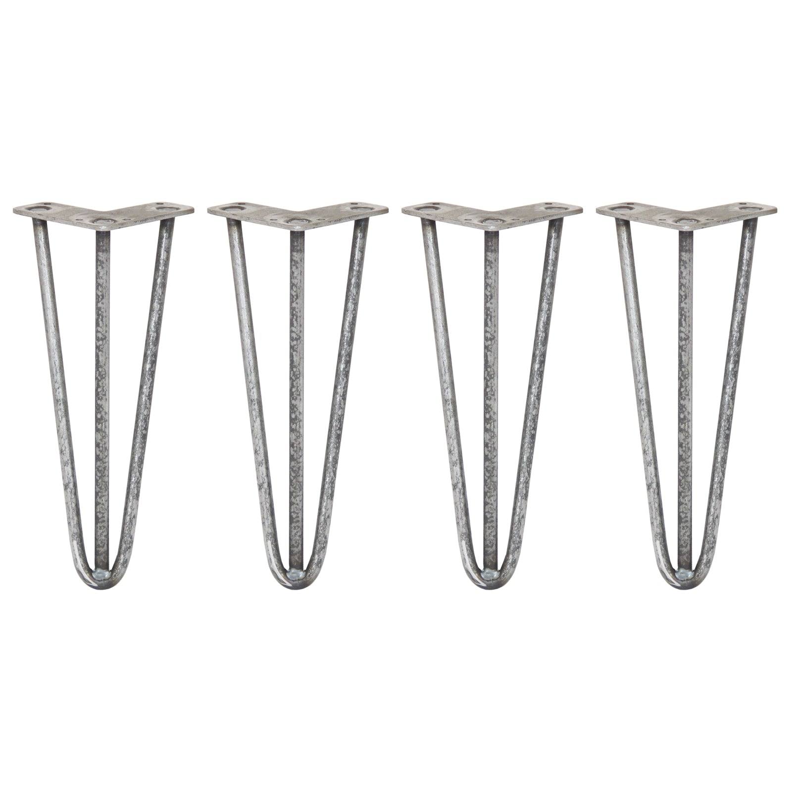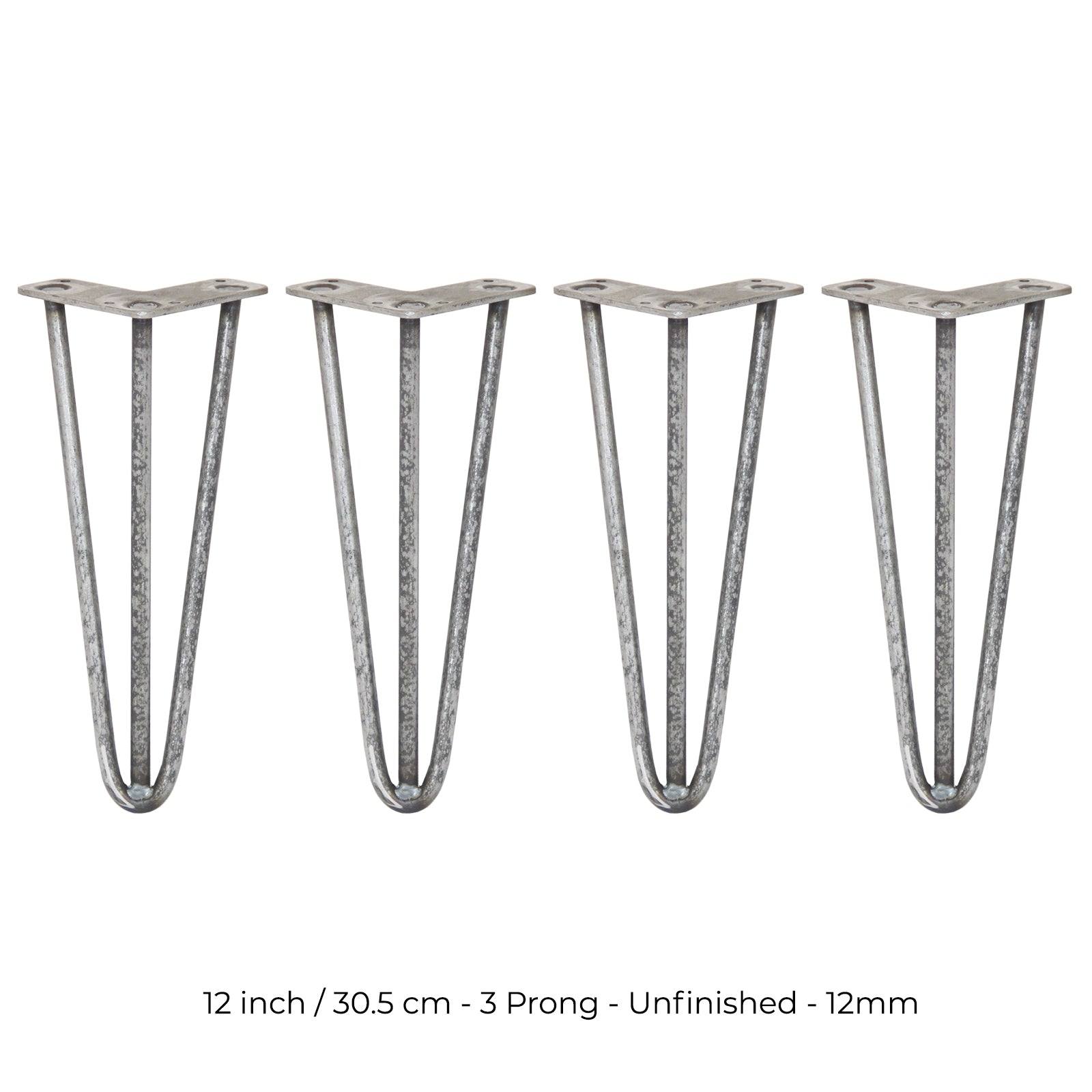4 x 12" Hairpin Legs - 3 Prong - 12mm - Raw Steel