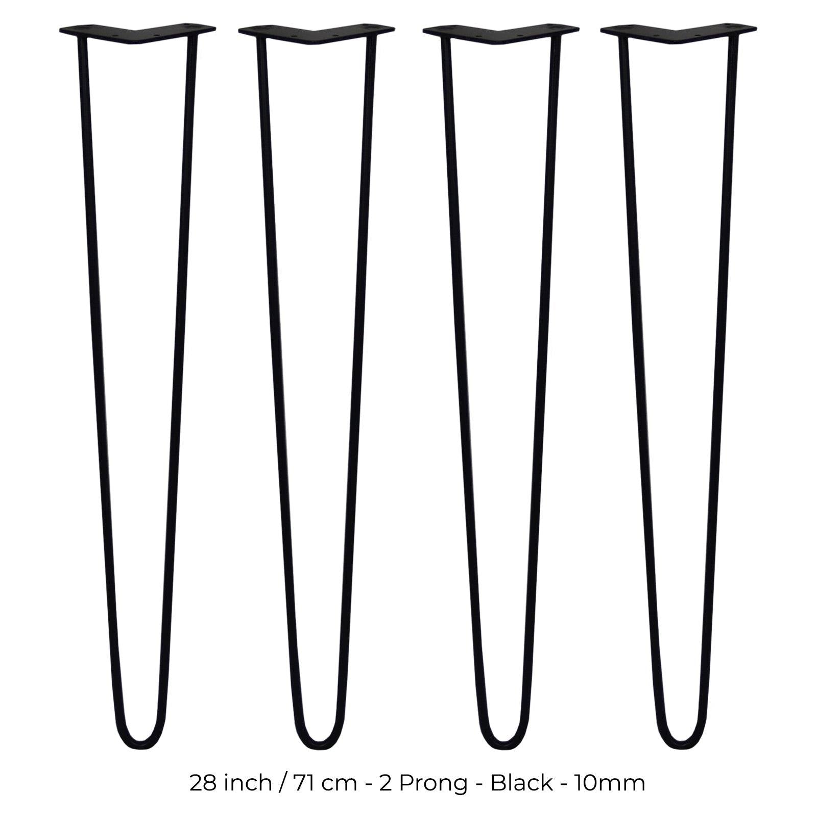 4 x 28" Hairpin Legs - 2 Prong - 10mm - Black