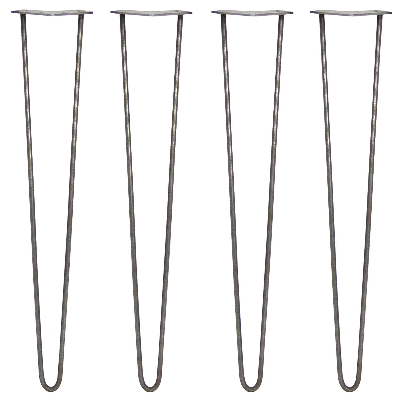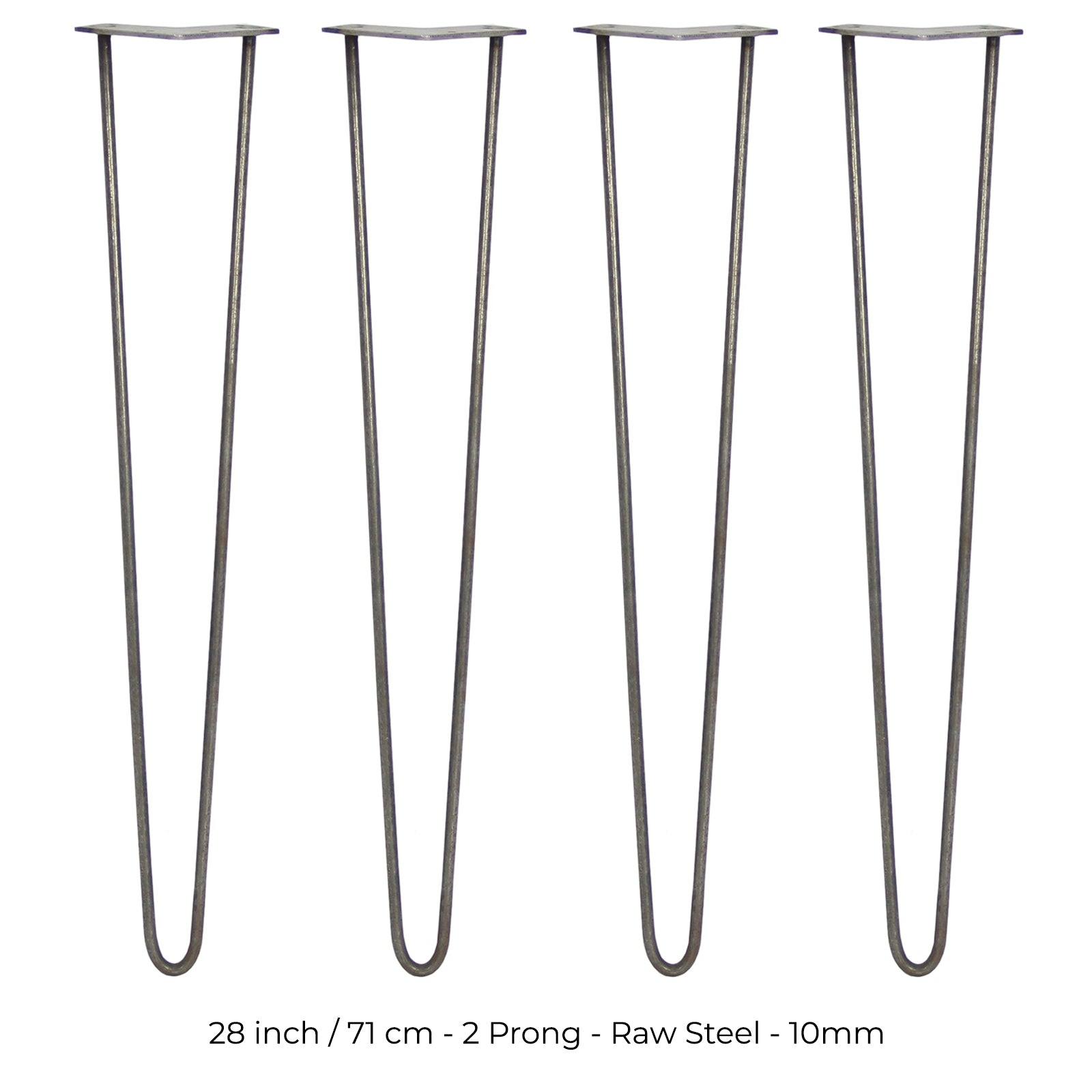 4 x 28" Hairpin Legs - 2 Prong - 10mm - Raw Steel